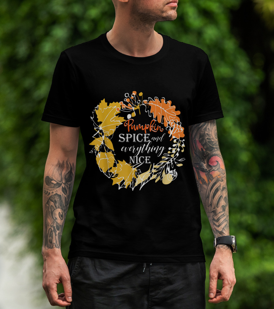 Pumpkin Spice And Everything Nice Fall Leaves Wreath T-Shirt