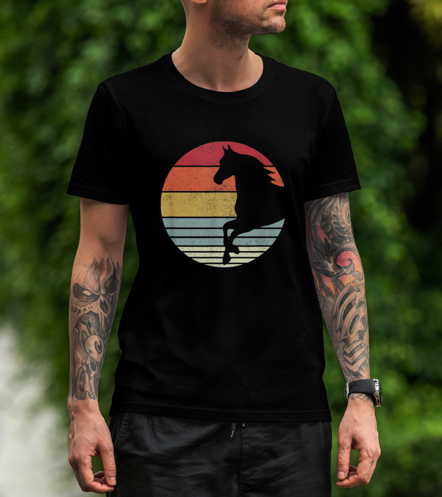 The Vintage Riding Horses Retro Sunset T-shirt is designed for everyday wear and a consistent fit. Fabric is pre-shrunk ring-spun cotton with durable stitching. See the size chart below for exact measurements.