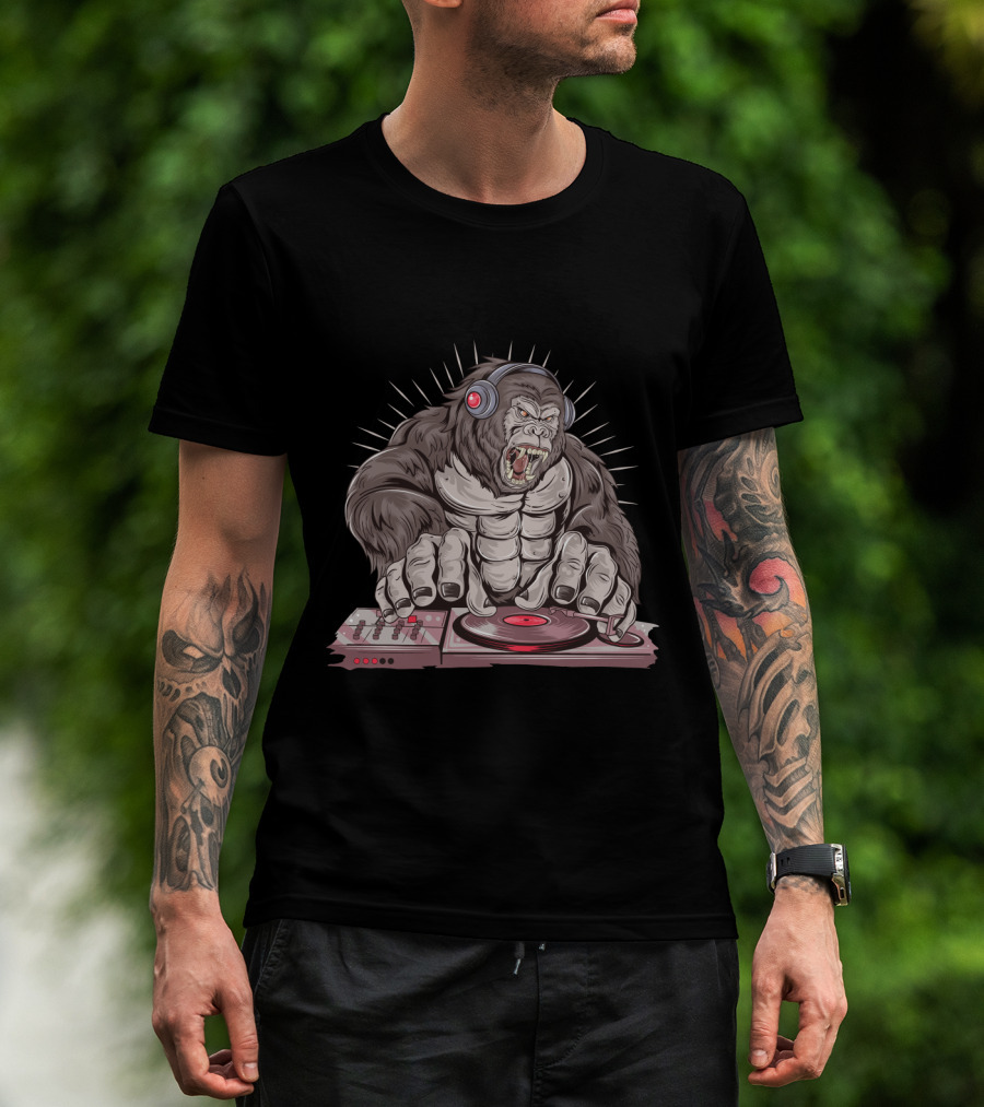 Funny Gorilla DJ With Headphones And Turntable T-Shirt