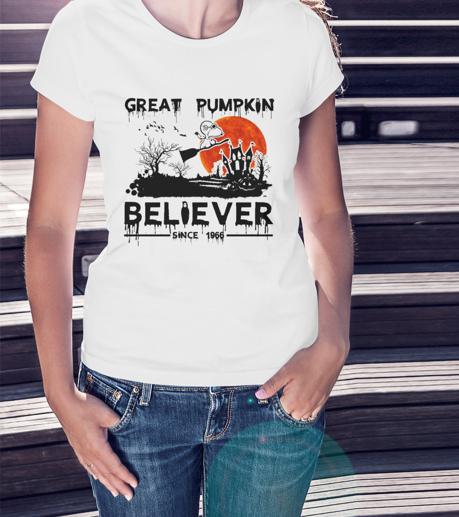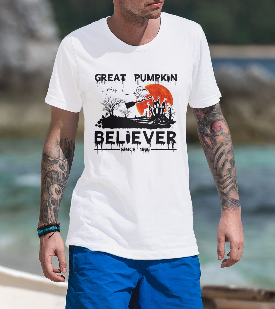 Great Pumpkin Believer Snoopy Since 1966 Halloween Moon Scene T-Shirt
