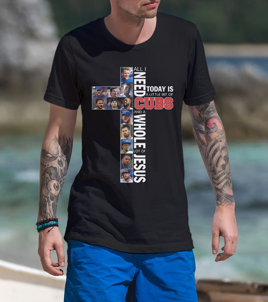 All I Need Today Is A Little Bit Of Cubs And A Whole Lot Of Jesus Cross Shape With Player Photos T-Shirt