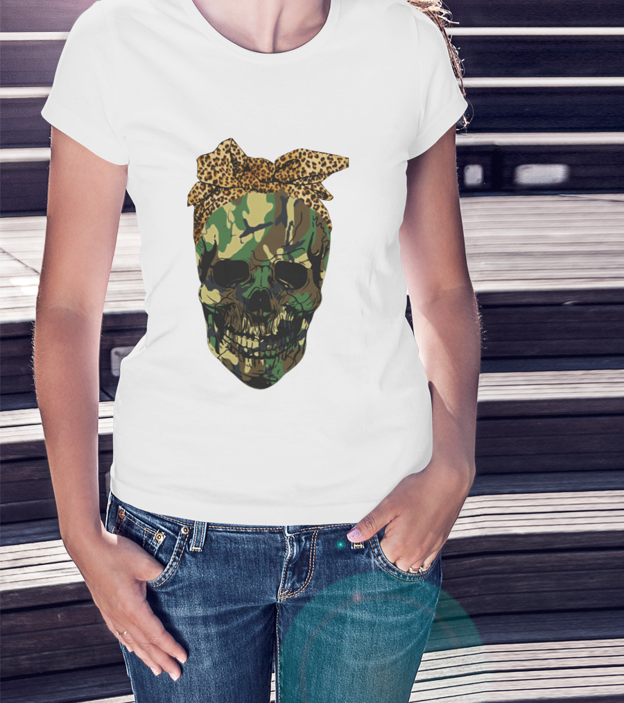 The Camo Skull with Leopard Print Bow T-shirt is designed for everyday wear and a consistent fit. Fabric is pre-shrunk ring-spun cotton with durable stitching. See the size chart below for exact measurements.
