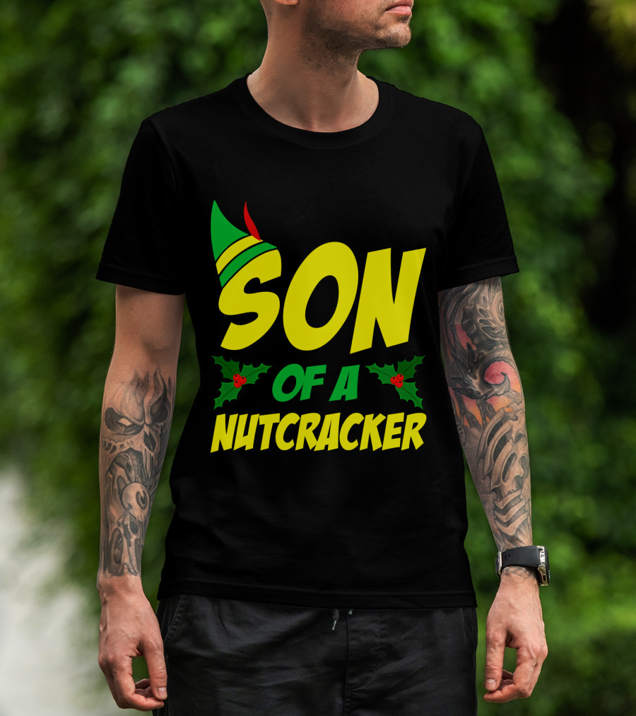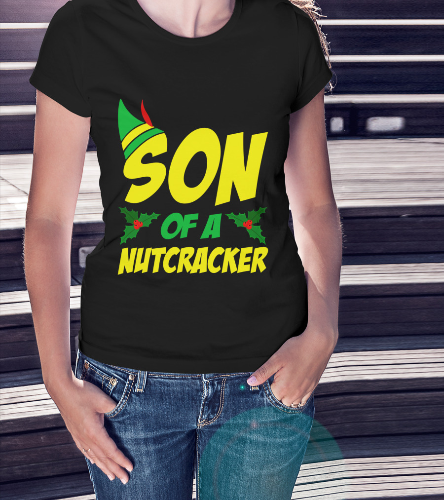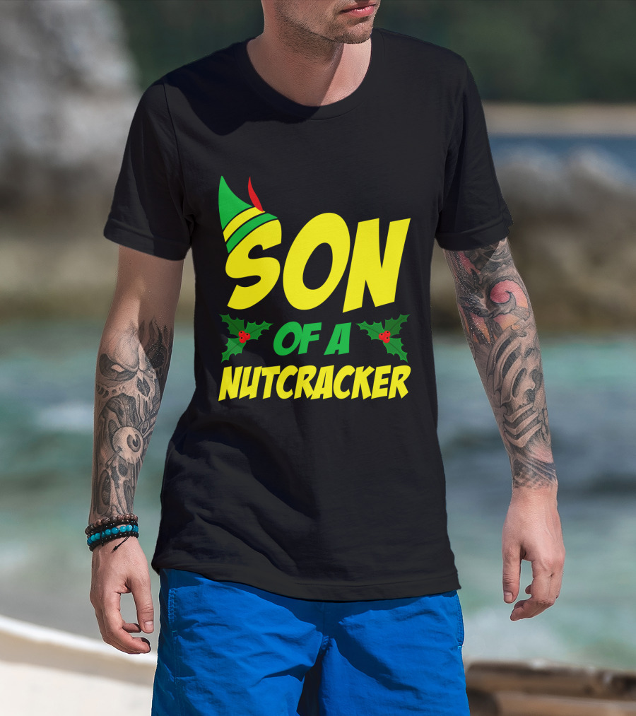 SON OF A NUTCRACKER Christmas Elf Hat Holly T-Shirt