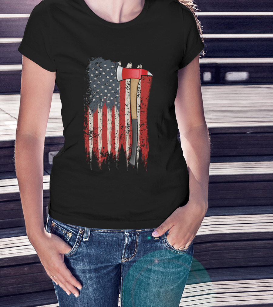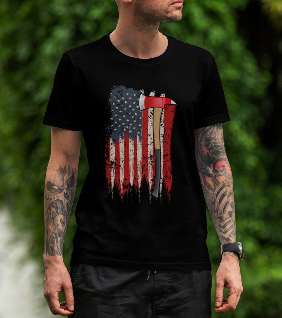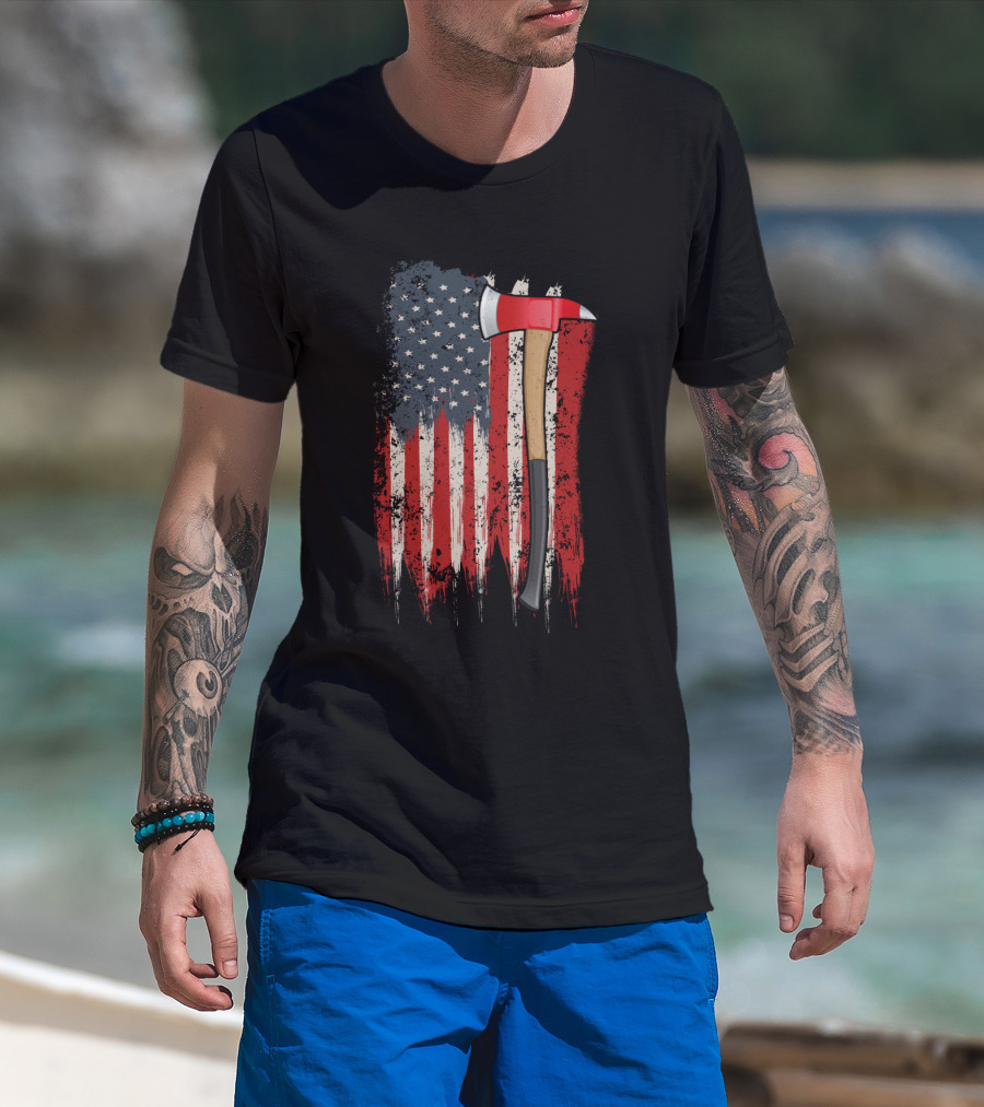 American Flag Themed Firefighter Axe Symbolizing Patriotism T-Shirt