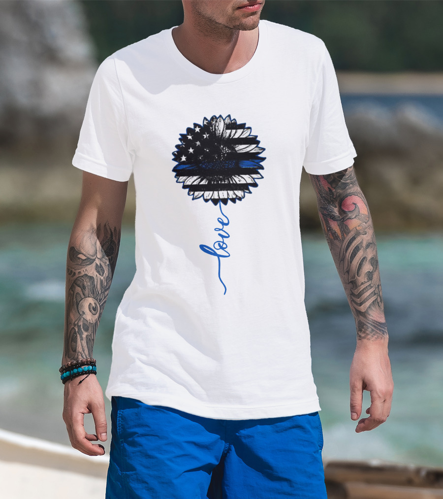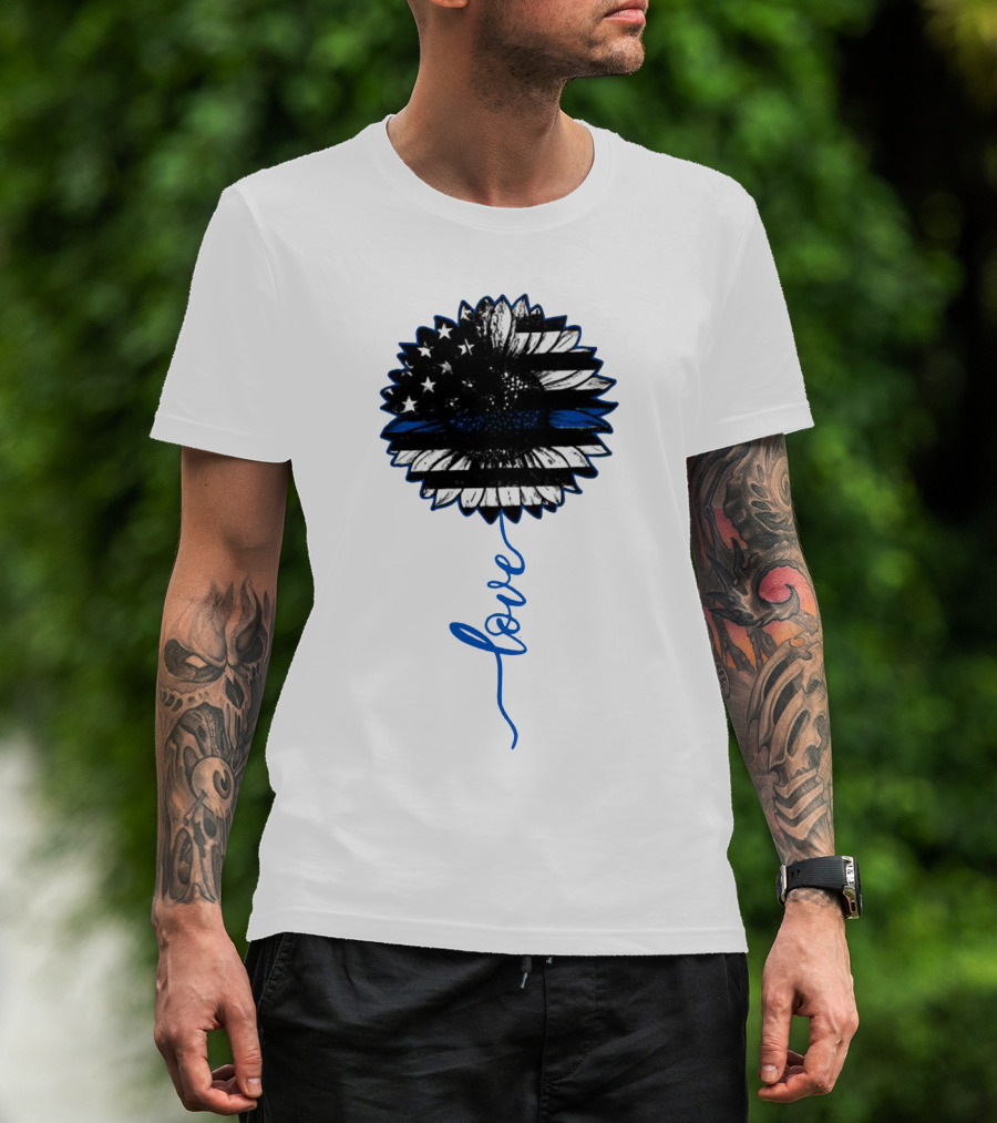 American Flag Sunflower Thin Blue Line Love T-Shirt