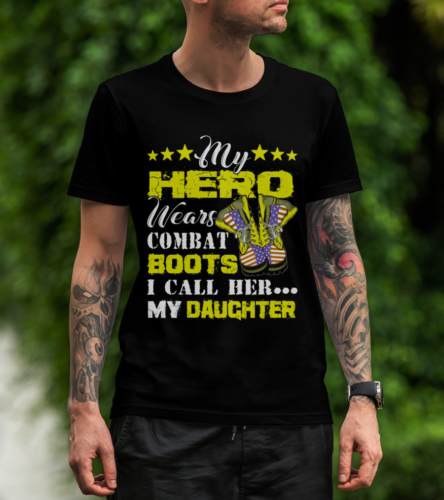 My Hero Wears Combat Boots I Call Her My Daughter Stars And Flag Boots T-Shirt