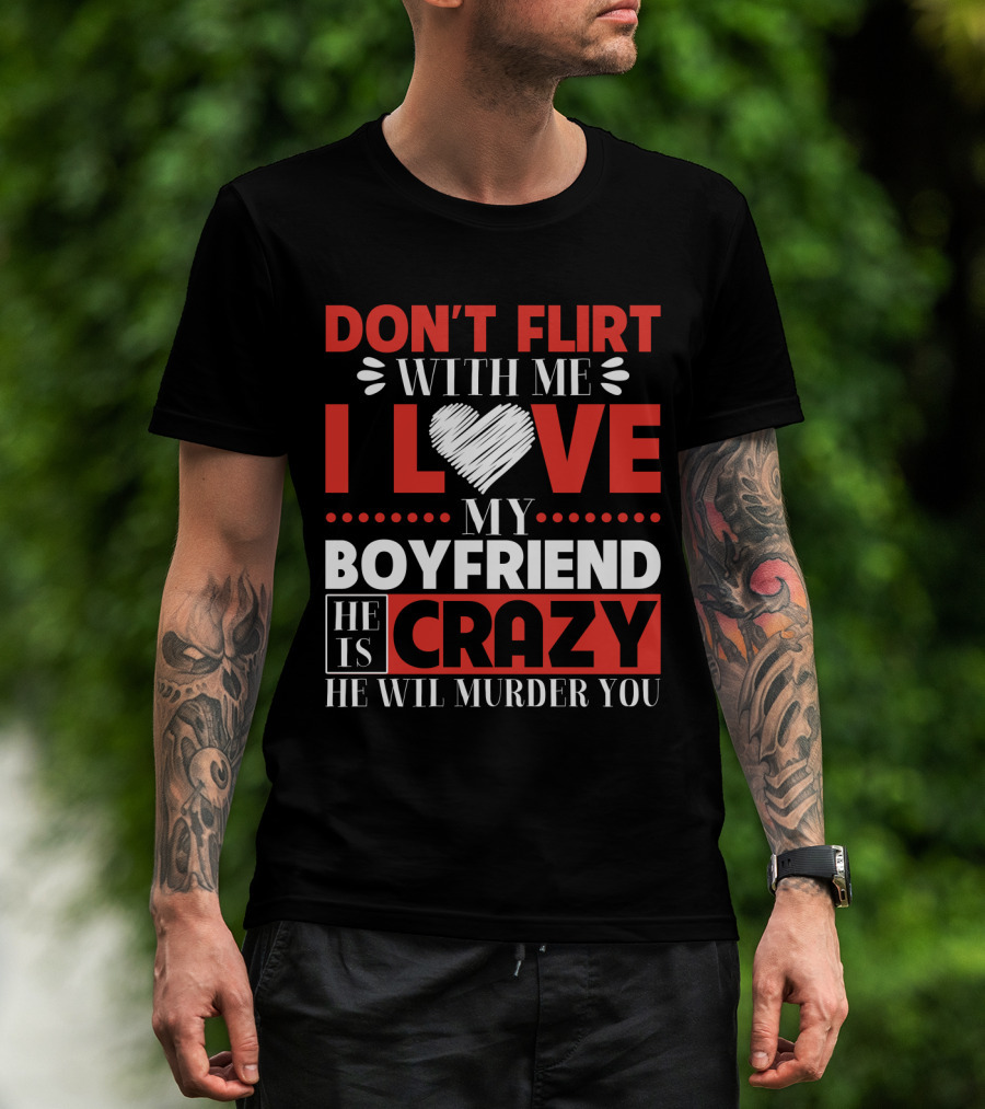 DON'T FLIRT WITH ME I LOVE MY BOYFRIEND HE IS CRAZY HE WILL MURDER YOU T-Shirt