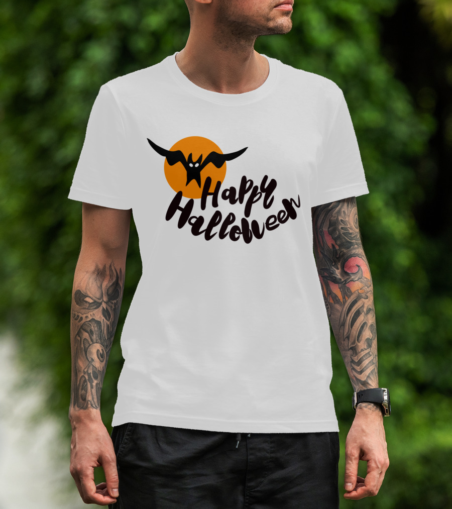 The Happy Halloween Cartoon Bat T-shirt is designed for everyday wear and a consistent fit. Fabric is pre-shrunk ring-spun cotton with durable stitching. See the size chart below for exact measurements.