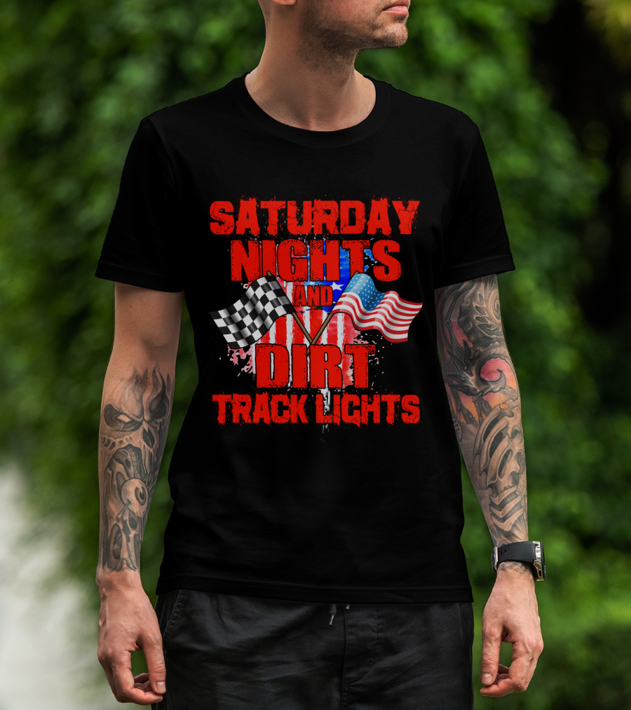 Saturday Nights And Dirt Track Lights Racing Motocross Flags America T-Shirt