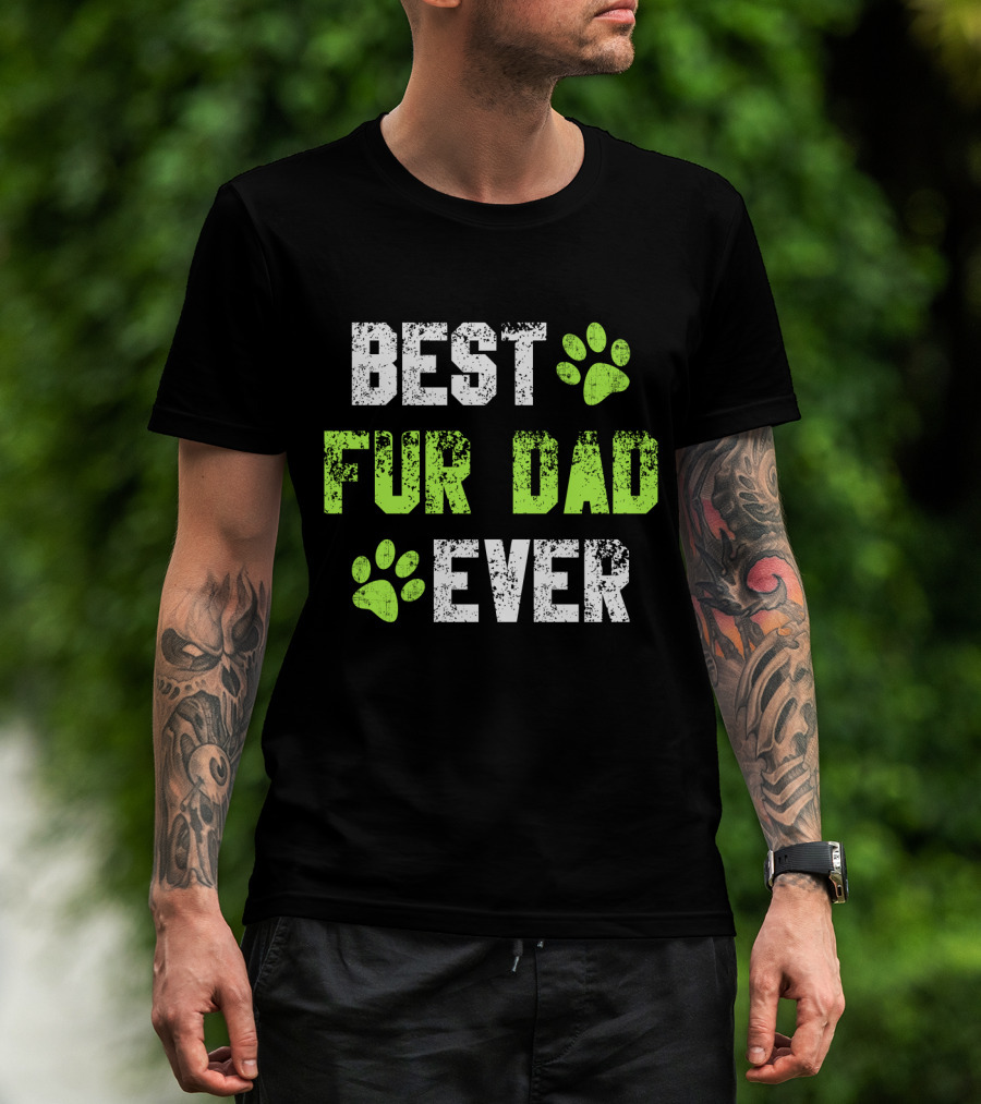 The Best Fur Dad Ever Paw Prints T-shirt is designed for everyday wear and a consistent fit. Fabric is pre-shrunk ring-spun cotton with durable stitching. See the size chart below for exact measurements.