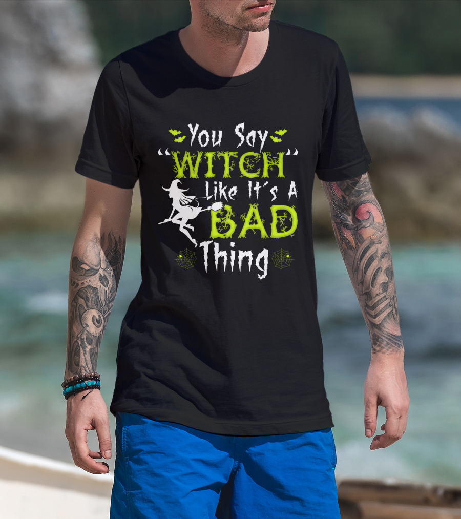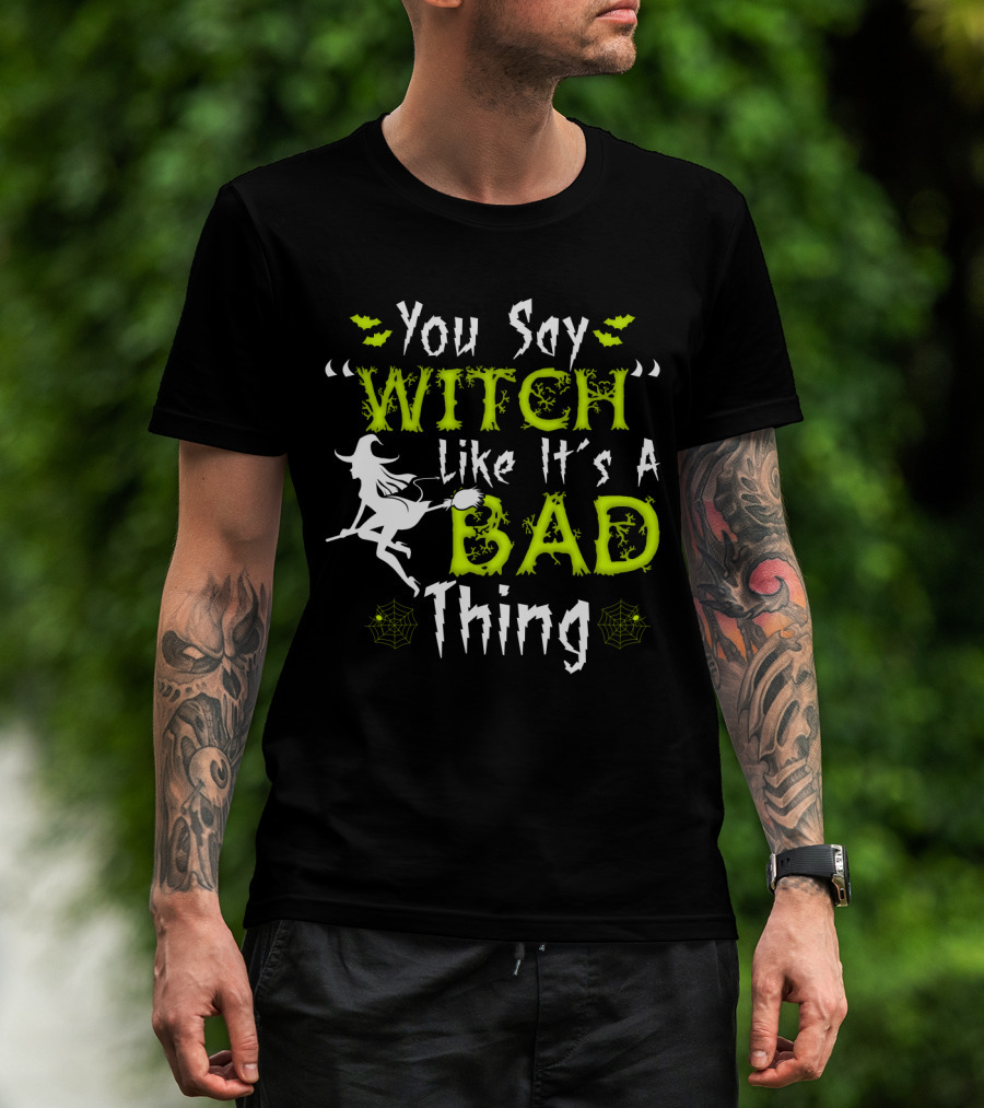 You Say Witch Like It's A Bad Thing Witch Silhouette With Spider Webs T-Shirt