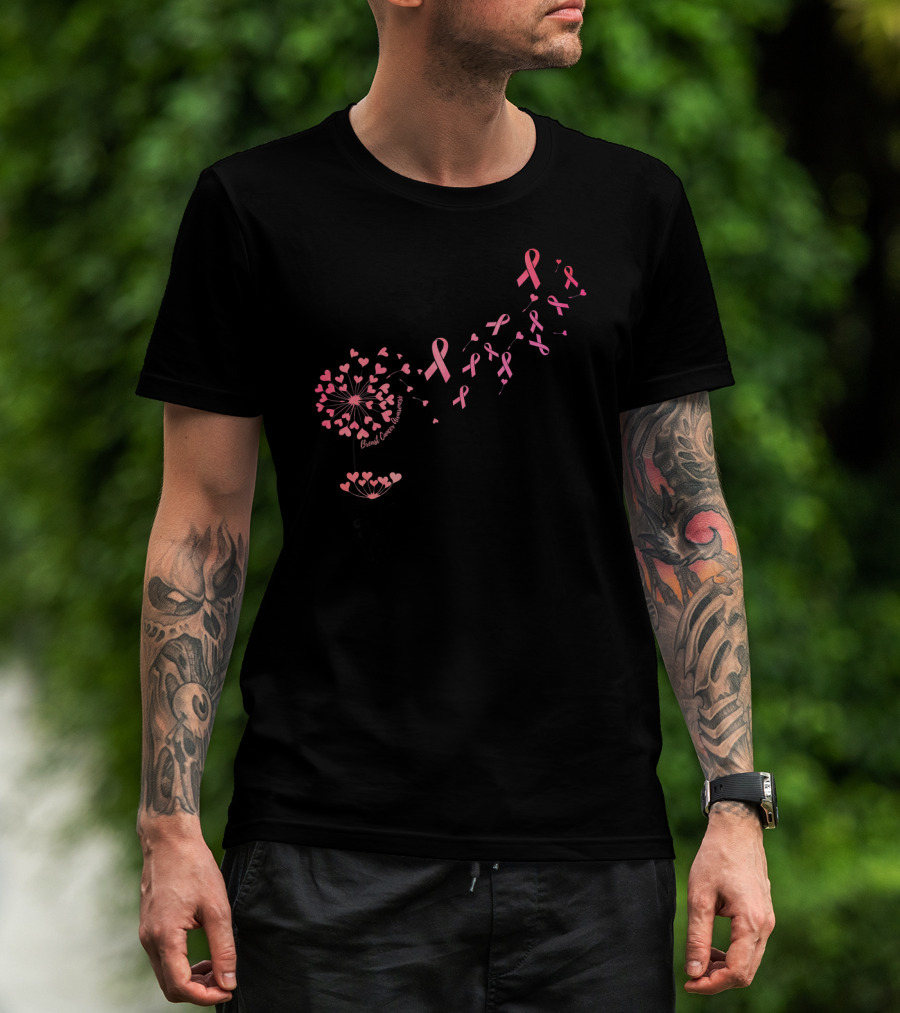 Flower Heart Dandelion Breast Cancer Awareness Ribbons T-Shirt