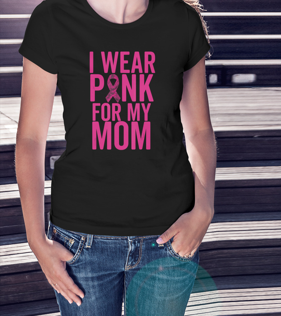 I Wear Pink For My Mom Breast Cancer Awareness Ribbon T-Shirt