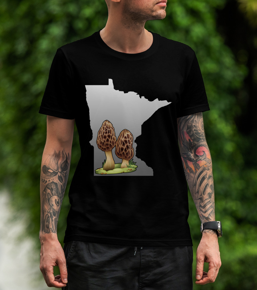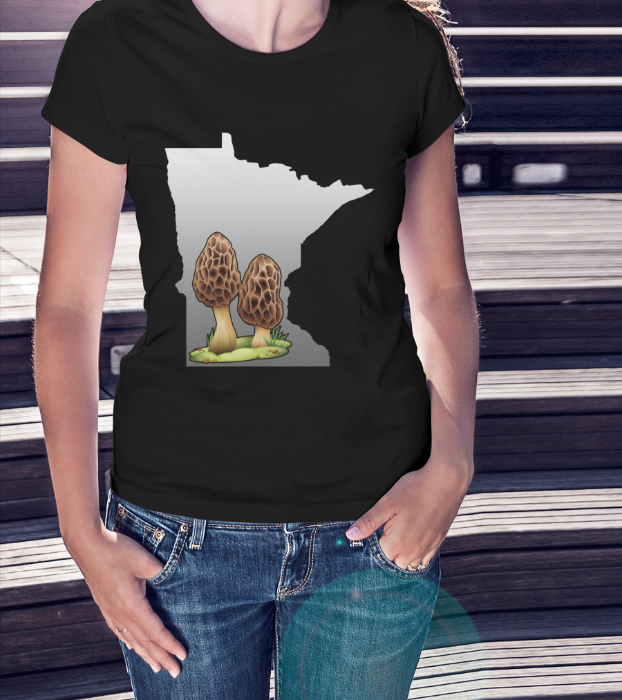 Minnesota Map With Two Morel Mushrooms In Front T-Shirt