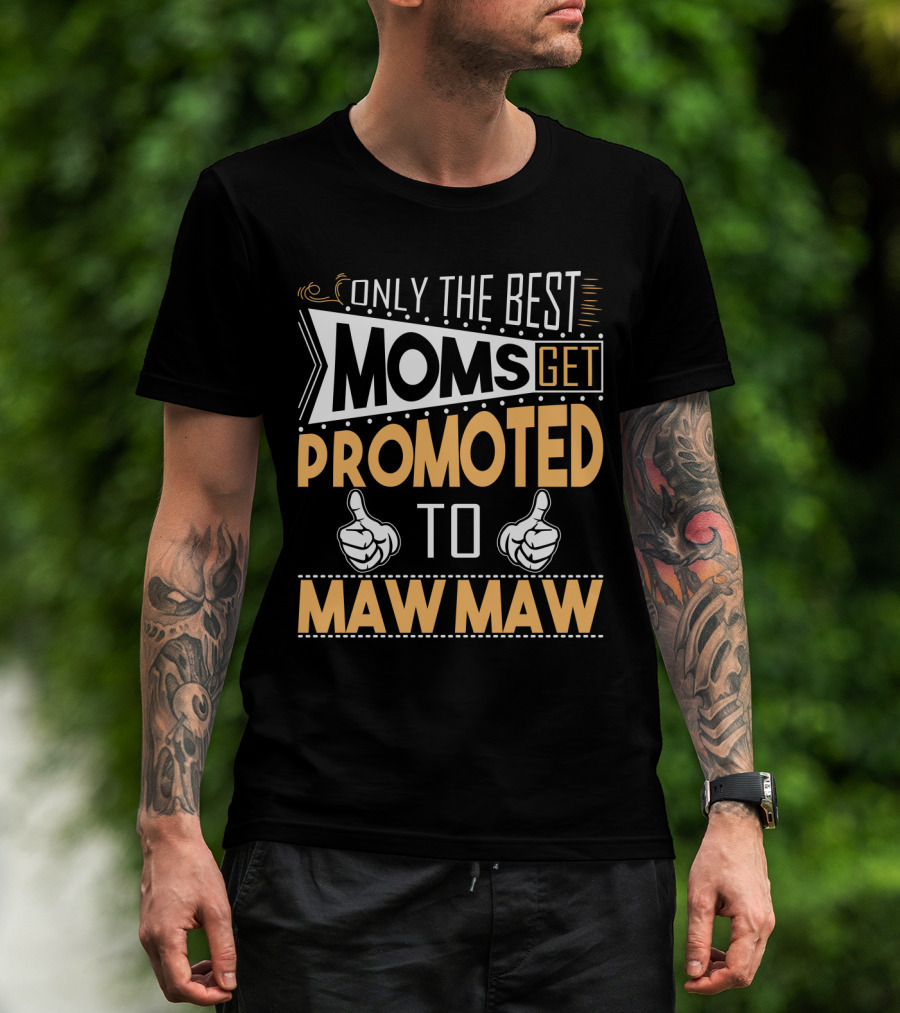 The Only the Best Moms Get Promoted to Maw Maw with Thumbs Up T-shirt is designed for everyday wear and a consistent fit. Fabric is pre-shrunk ring-spun cotton with durable stitching. See the size chart below for exact measurements.