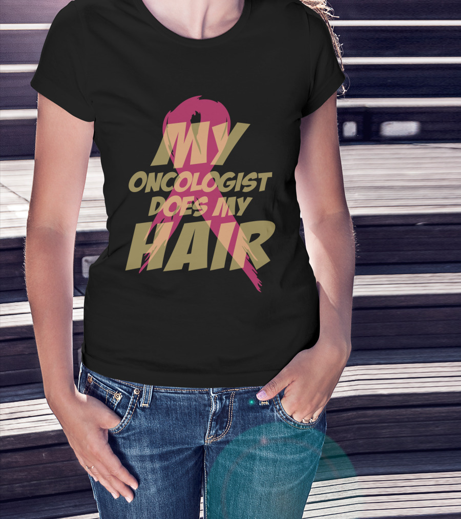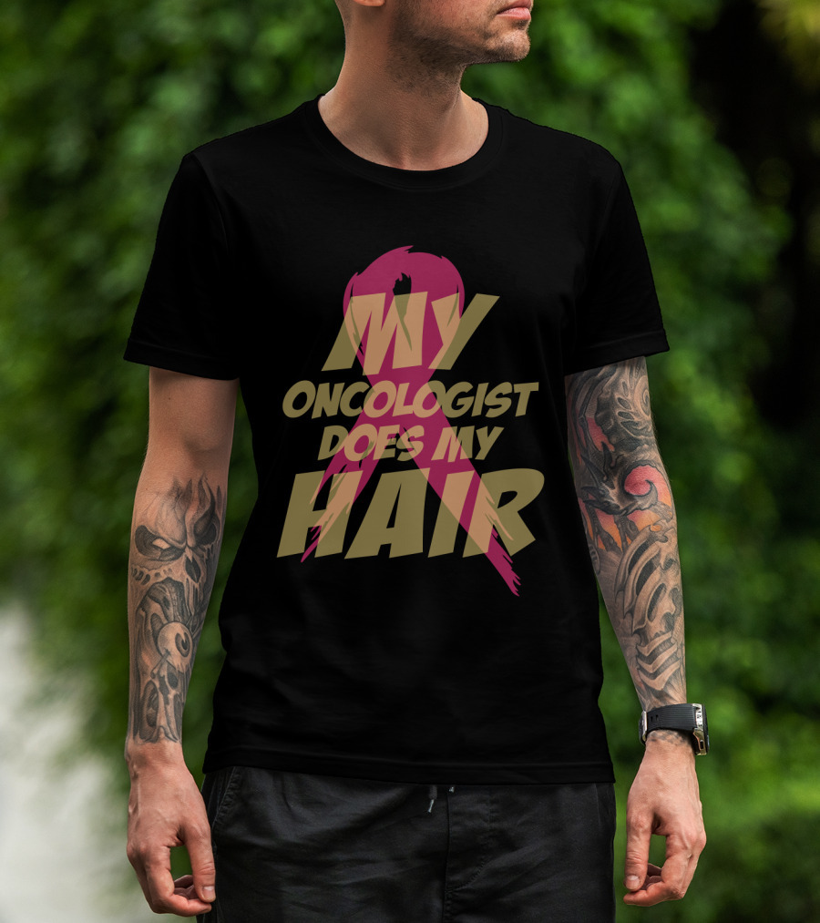 The My Oncologist Does My Hair Pink T-shirt is designed for everyday wear and a consistent fit. Fabric is pre-shrunk ring-spun cotton with durable stitching. See the size chart below for exact measurements.