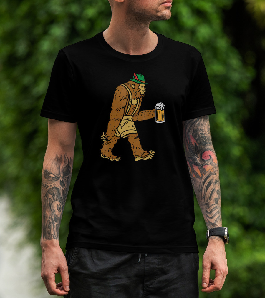 German Bigfoot Sasquatch Lederhose Beer Oktoberfest Funny T-Shirt