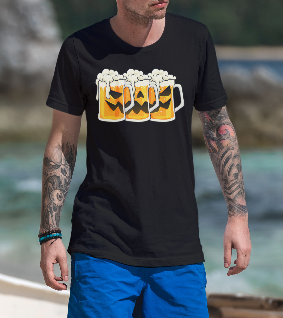 Halloween Jack O Lantern Beer Mug Faces T-Shirt