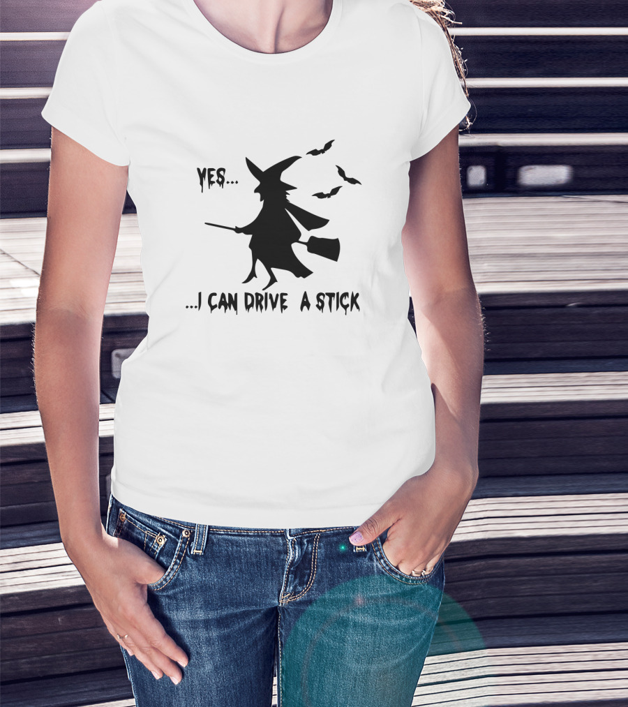 Yes I Can Drive A Stick Witch Silhouette With Bats T-Shirt