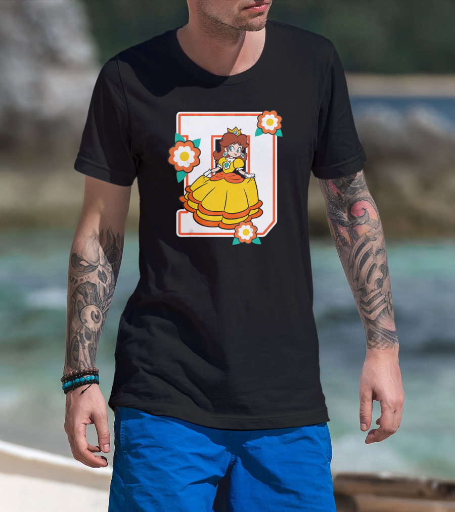 Super Mario Daisy Princess With Flowers And Letter D T-Shirt