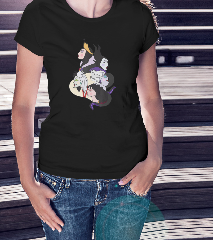 Disney Villains Side Profile Group Shot With Queen And Witch Characters T-Shirt