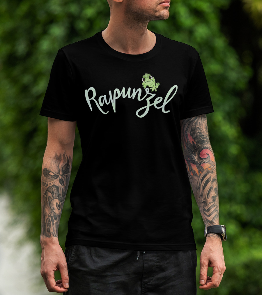Disney Tangled Rapunzel Pascal Cursive Text T-Shirt
