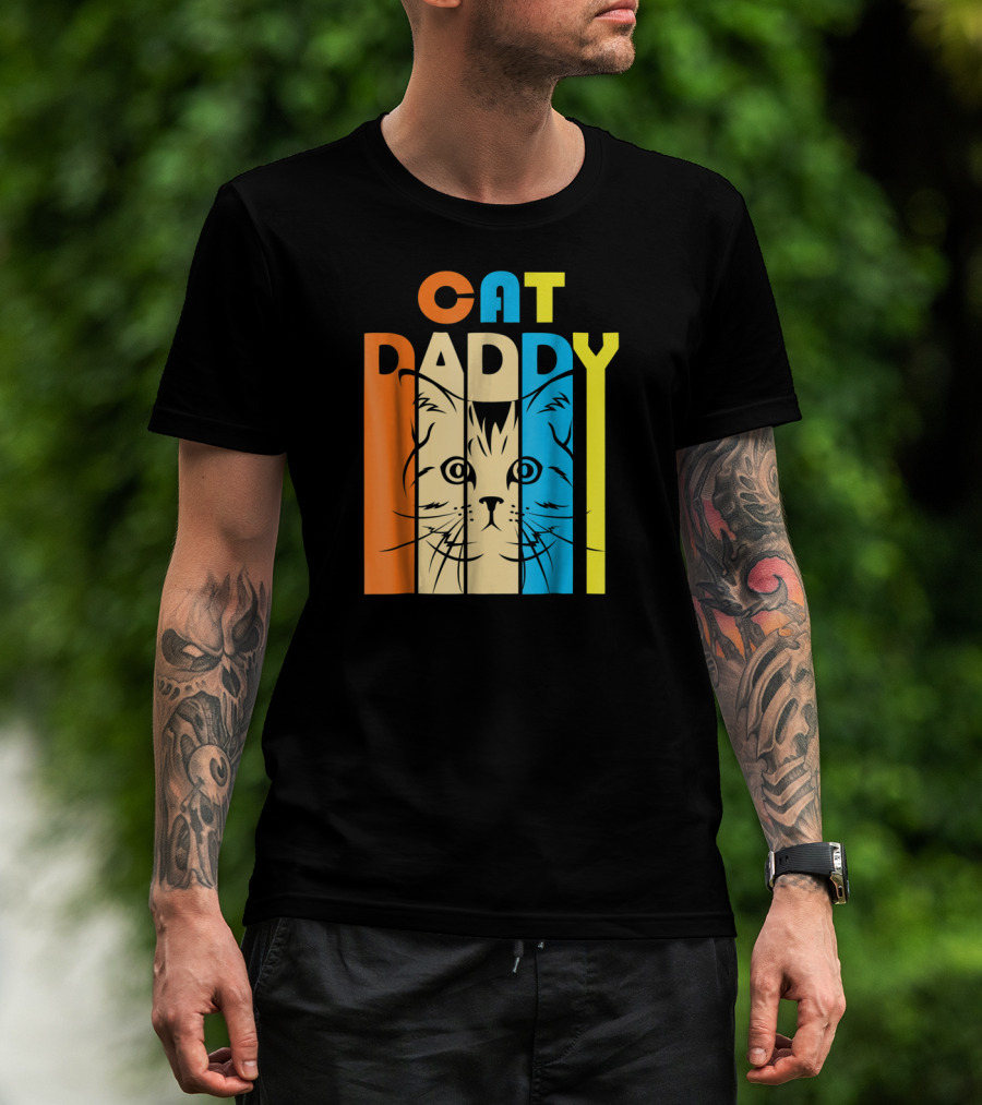 Retro Vintage Cat Daddy Multicolor T-Shirt