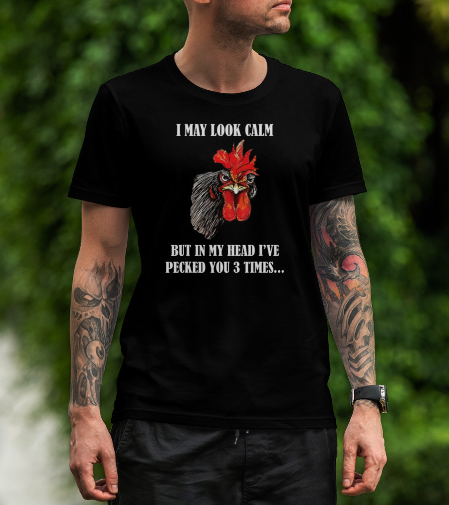 I May Look Calm But In My Head I've Pecked You 3 Times Funny Rooster Chicken T-Shirt