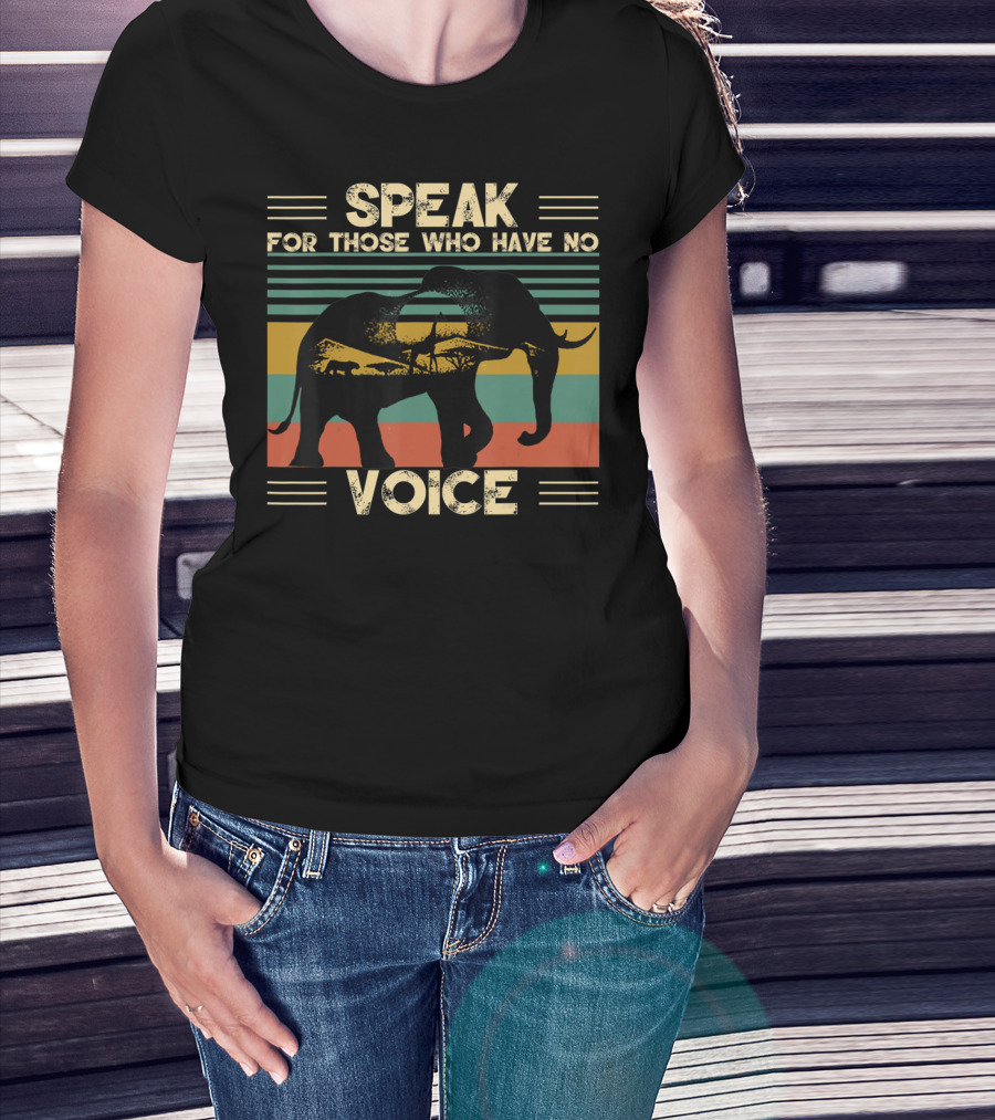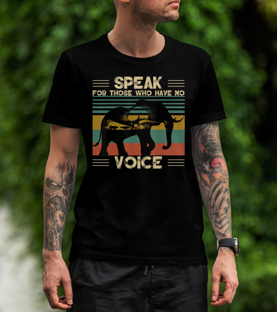 Speak For Those Who Have No Voice Elephant With Striped Sunset Background T-Shirt