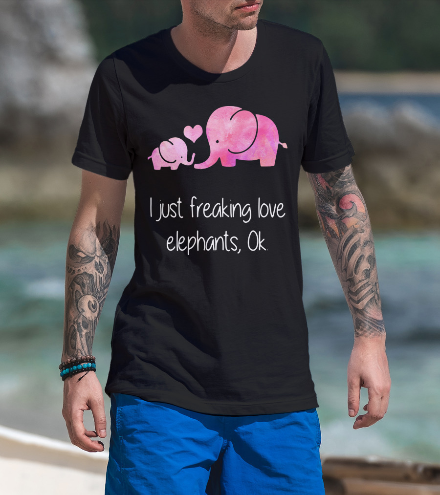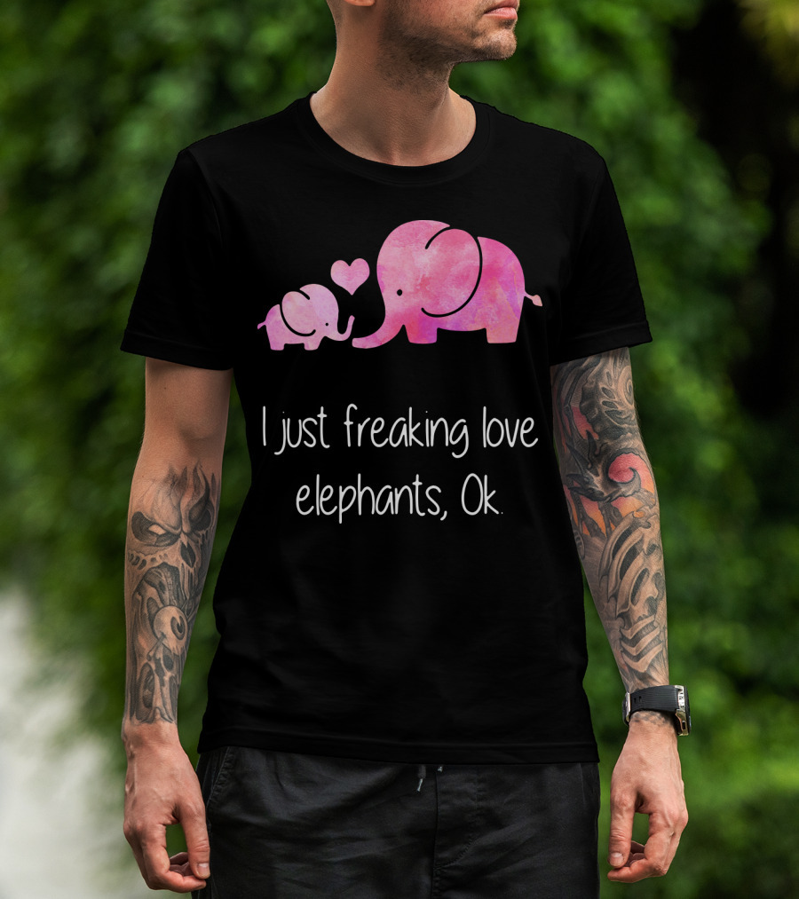 I Just Freaking Love Elephants Ok Pink Elephant Heart Design For Elephant Lovers T-Shirt