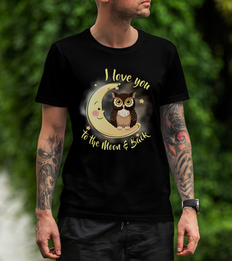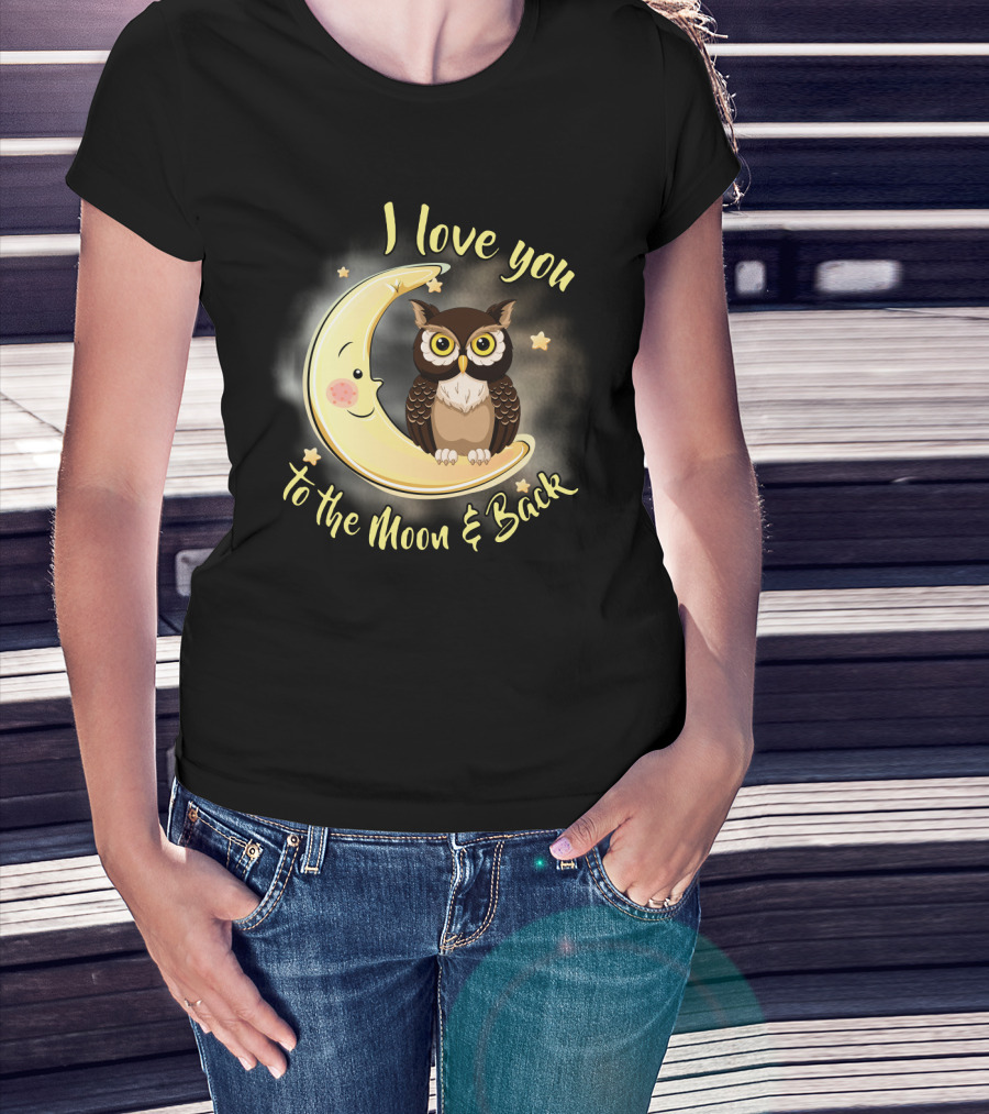 I Love You To The Moon And Back Owl On Smiling Clown Moon With Stars T-Shirt