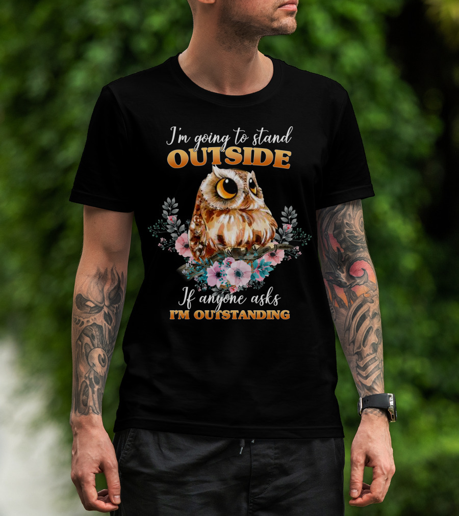 I'm Going To Stand Outside If Anyone Asks I'm Outstanding Owl Floral T-Shirt