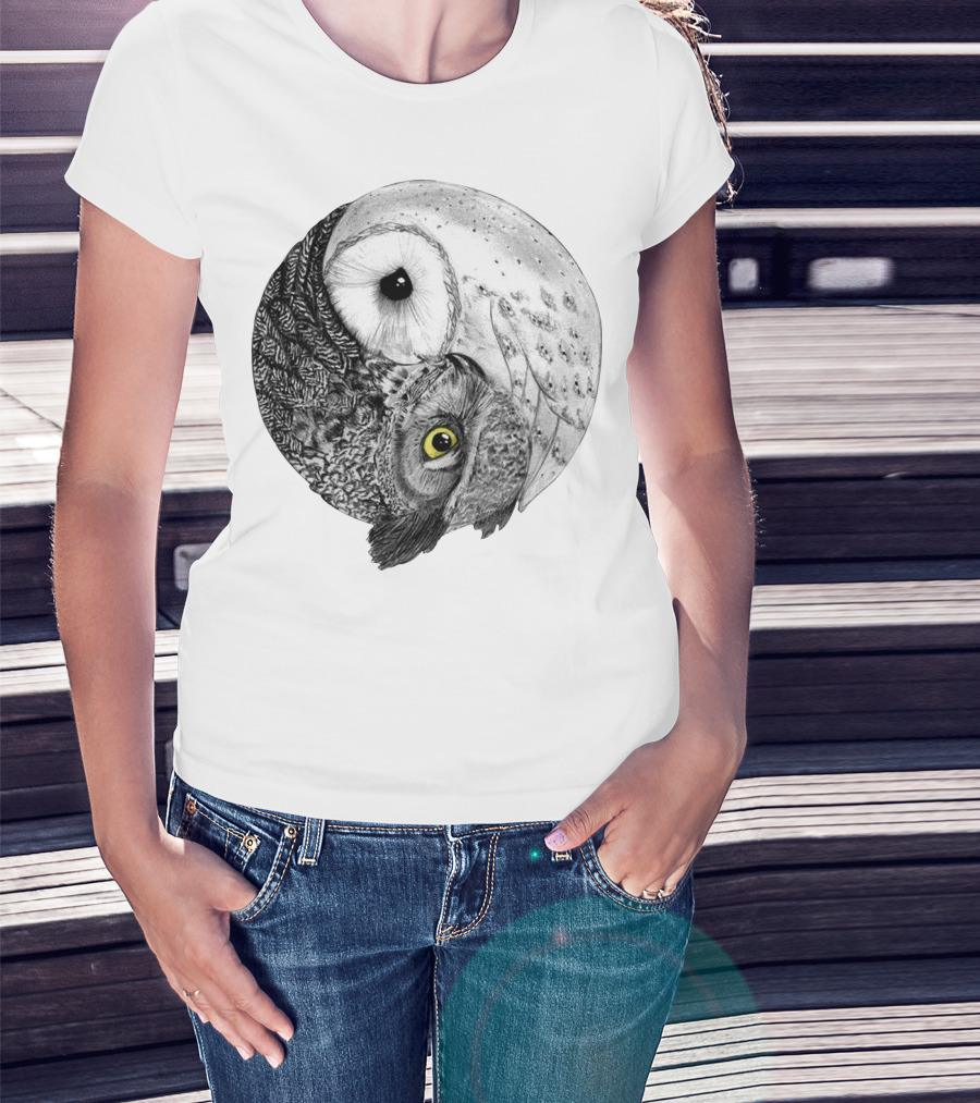 The Yin Yang Black and White Owl T-shirt is designed for everyday wear and a consistent fit. Fabric is pre-shrunk ring-spun cotton with durable stitching. See the size chart below for exact measurements.
