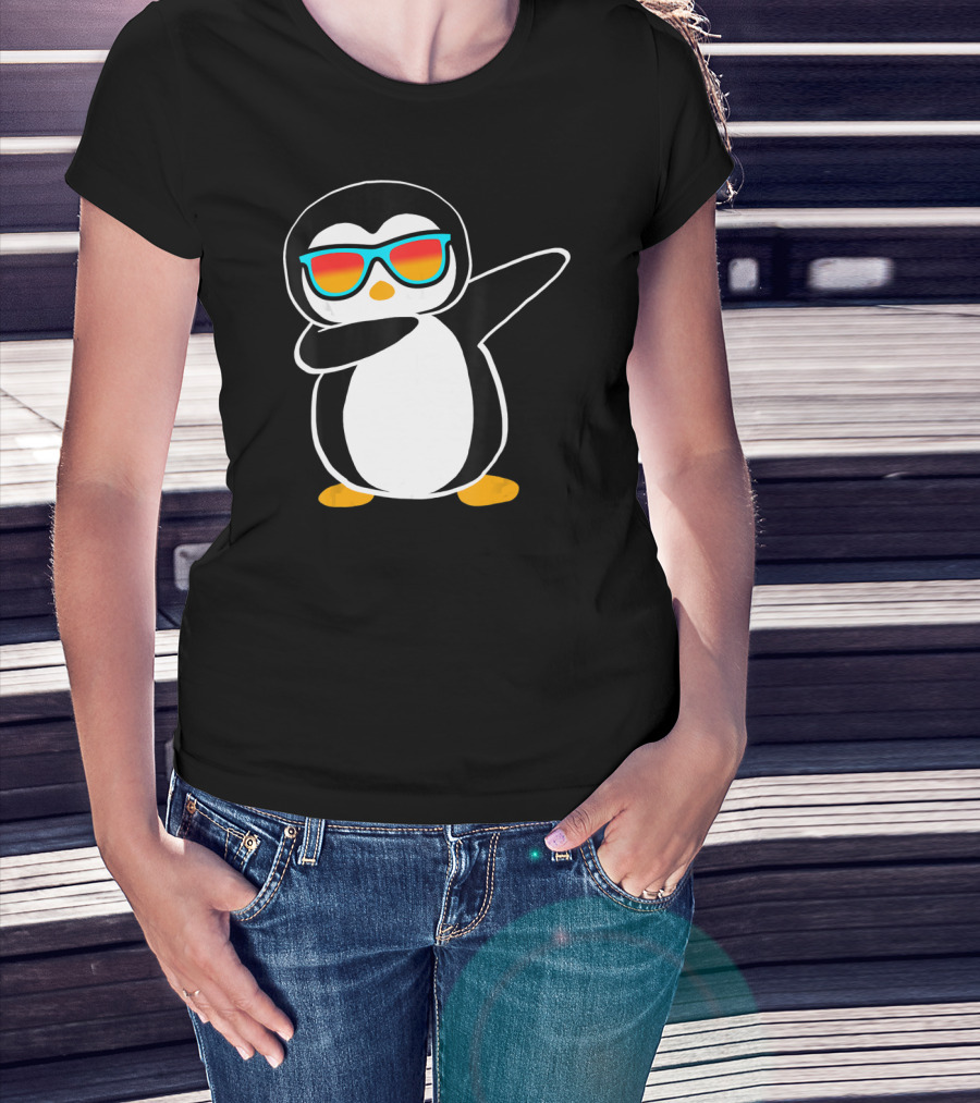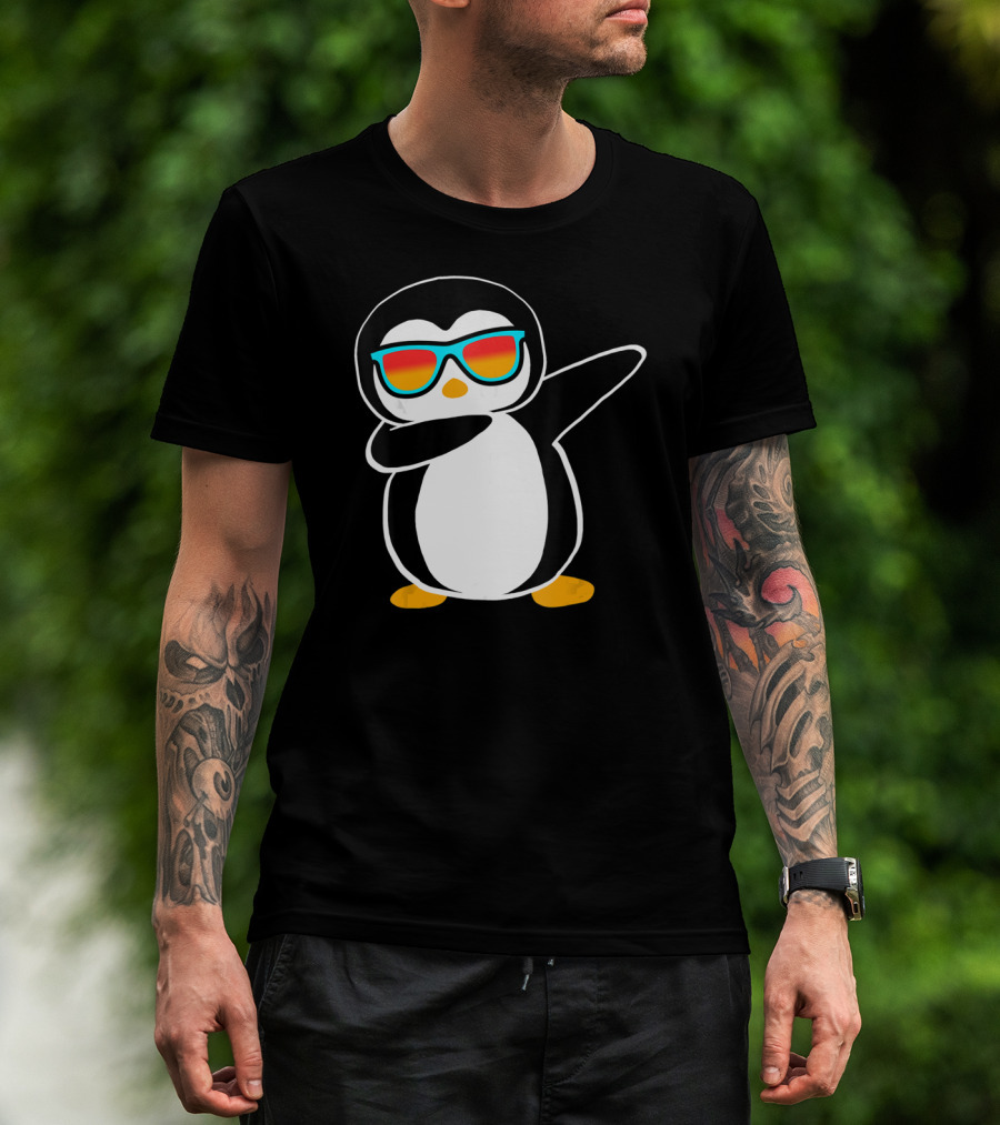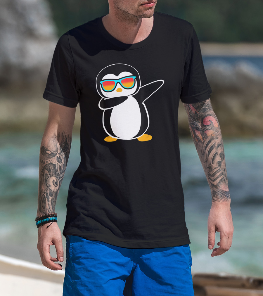 Dabbing Penguin Cute Animal With Sunglasses Birthday Party T-Shirt