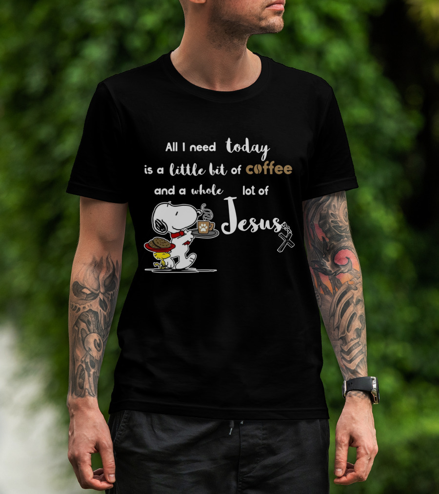 All I Need Today Is A Little Bit Of Coffee And A Whole Lot Of Jesus Snoopy Peanuts T-Shirt
