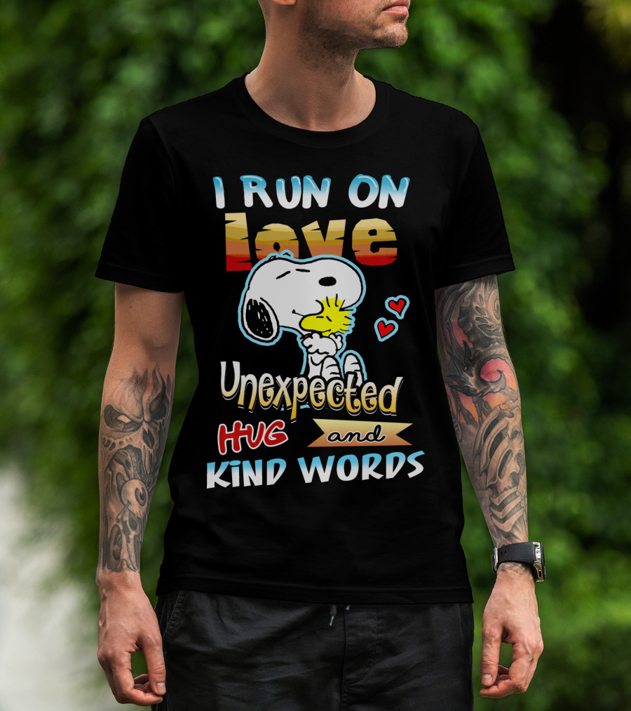 I Run On Love Unexpected Hug And Kind Words Snoopy Peanuts Movie T-Shirt