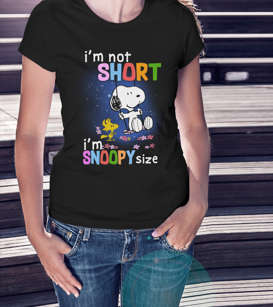 I'm Not Short I'm Snoopy Size The Peanuts Movie Swinging Snoopy And Woodstock T-Shirt