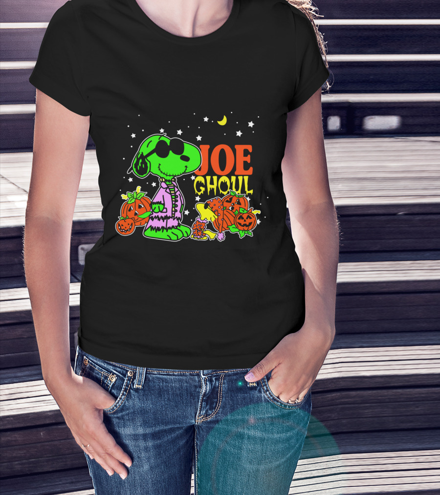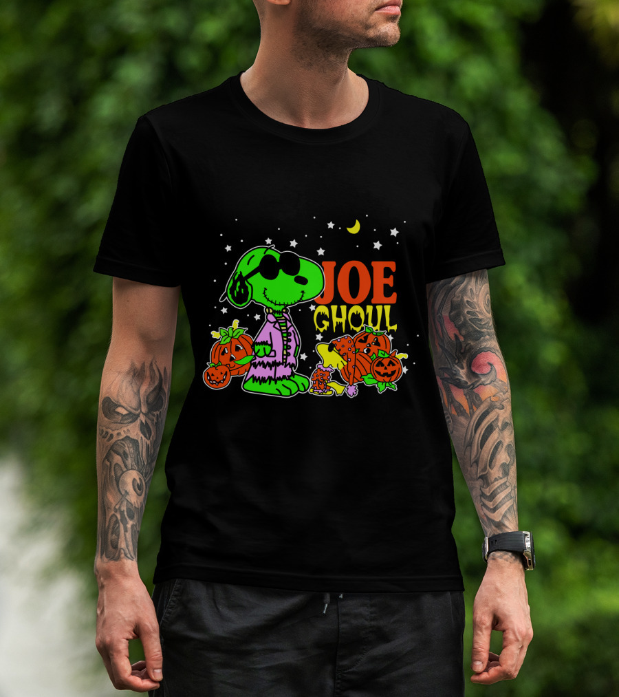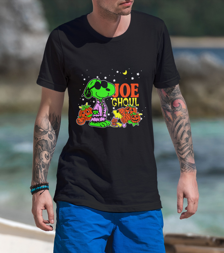 The Joe Ghoul Halloween Snoopy Peanuts Pumpkins Moon Stars T-shirt is designed for everyday wear and a consistent fit. Fabric is pre-shrunk ring-spun cotton with durable stitching. See the size chart below for exact measurements.