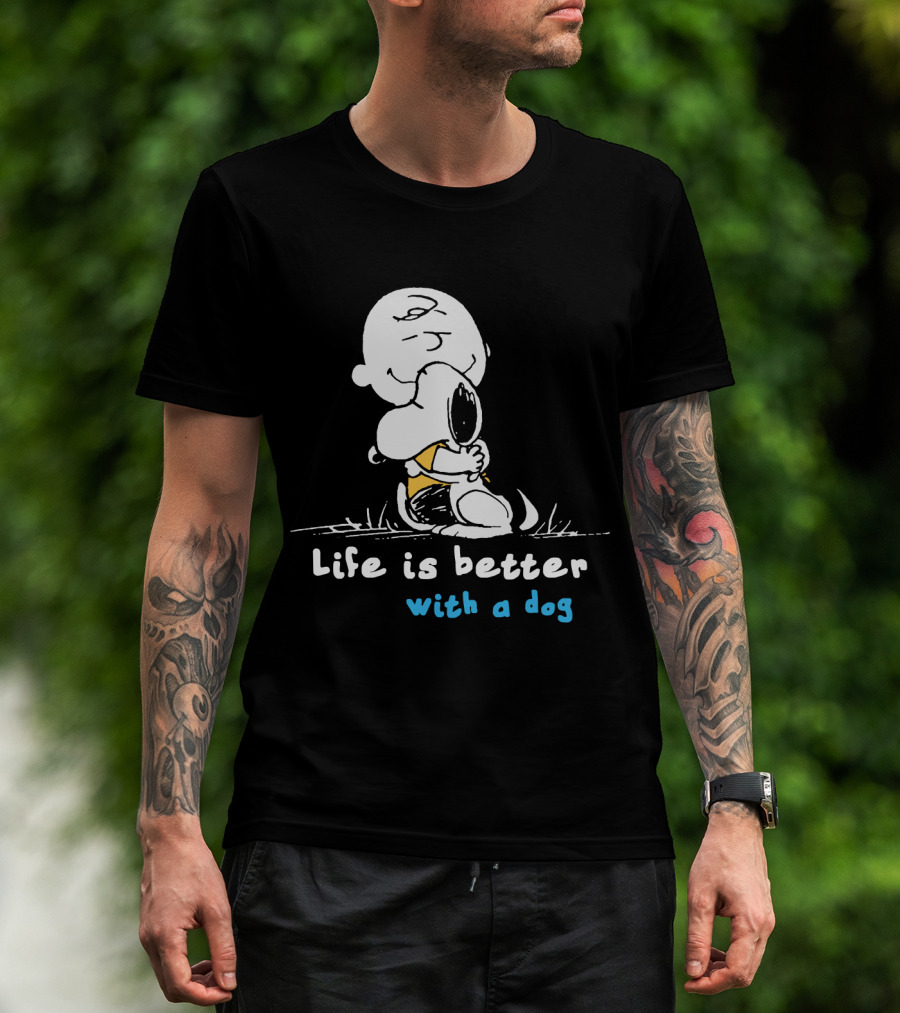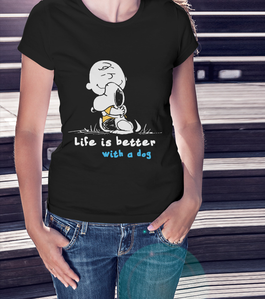 Life Is Better With A Dog Snoopy Hugging Peanuts Movie T-Shirt