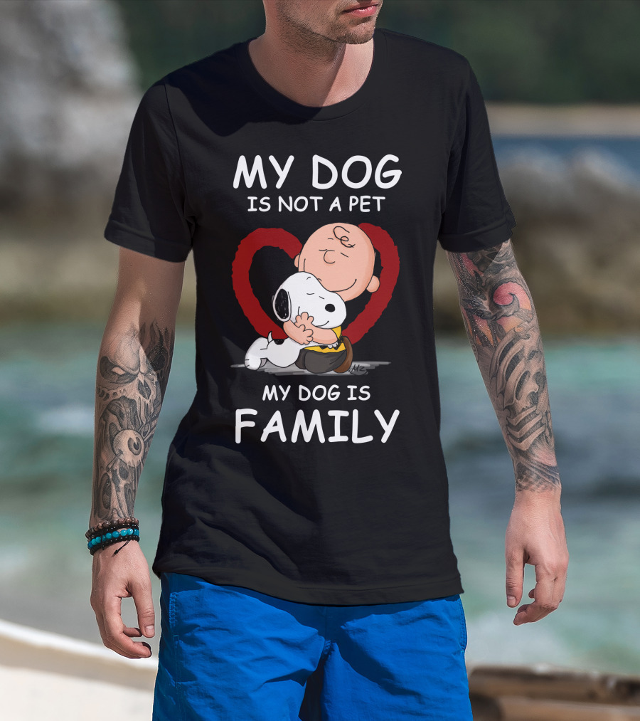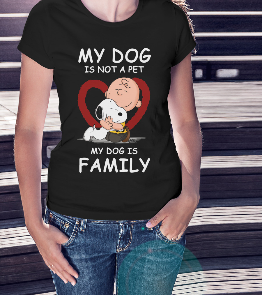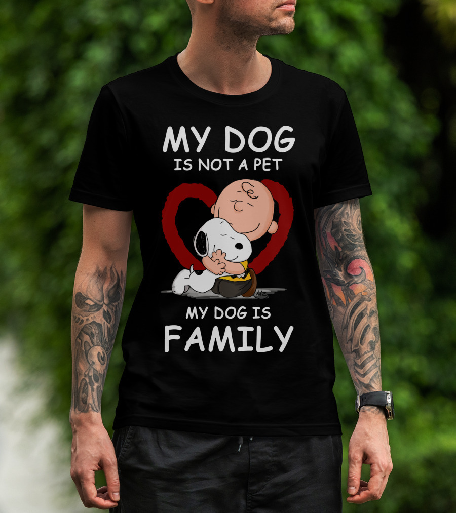 My Dog Is Not A Pet My Dog Is Family Snoopy Charlie Brown Peanuts Movie Hug Heart T-Shirt