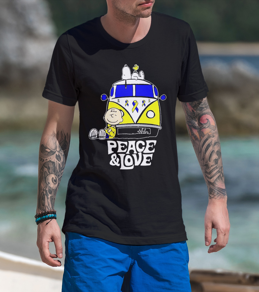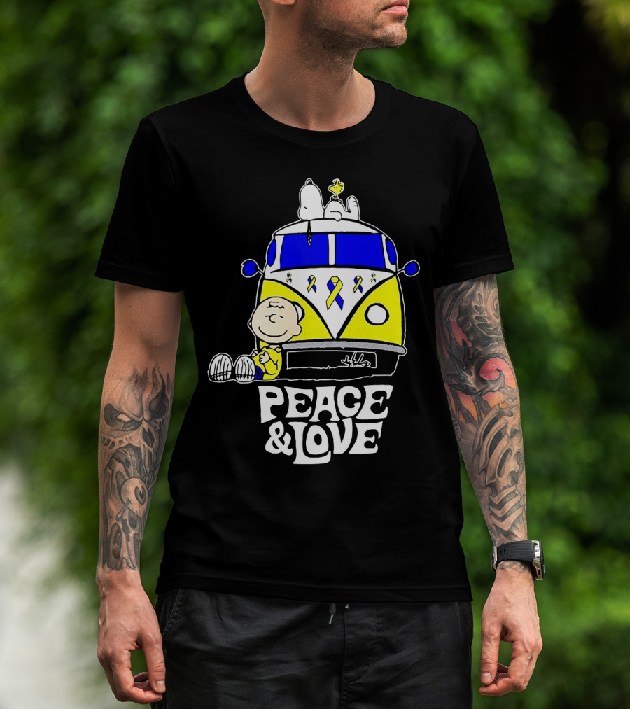 Peace And Love Snoopy Woodstock Yellow Ribbon Van Peanuts Cancer Warrior T-Shirt
