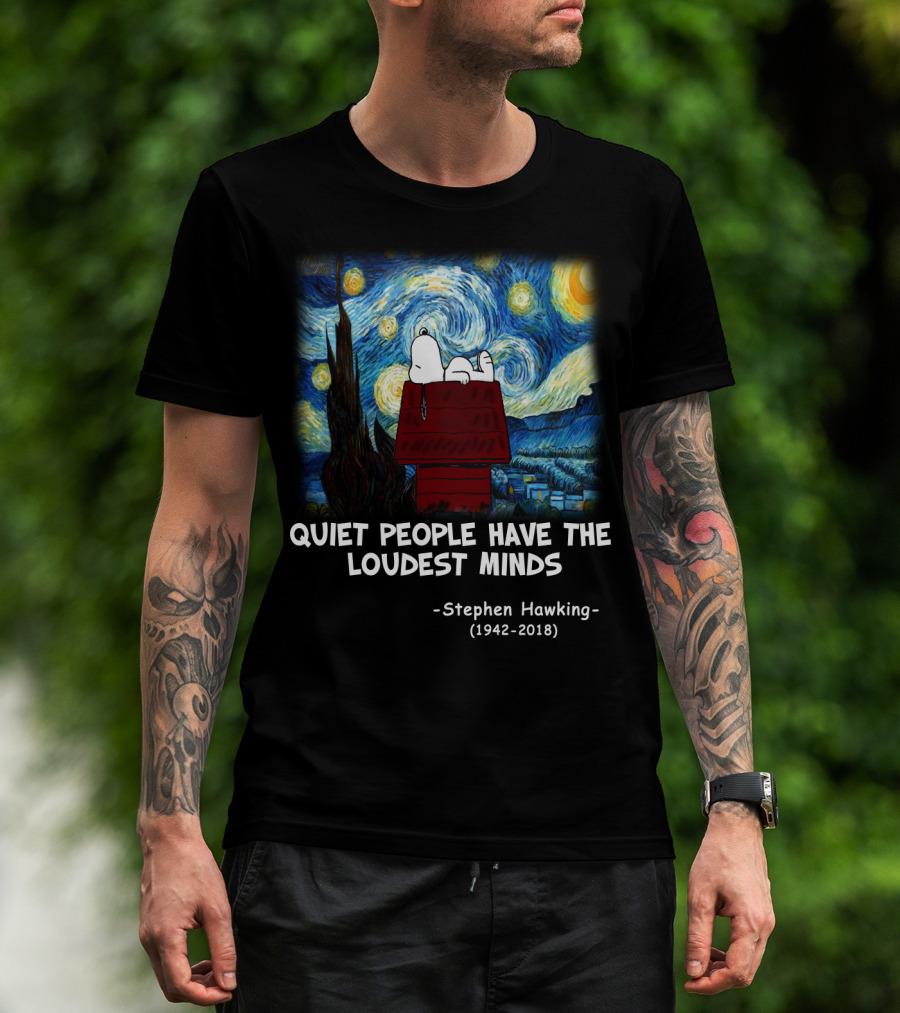 Quiet People Have The Loudest Minds Snoopy Starry Night Stephen Hawking Tribute Peanuts T-Shirt