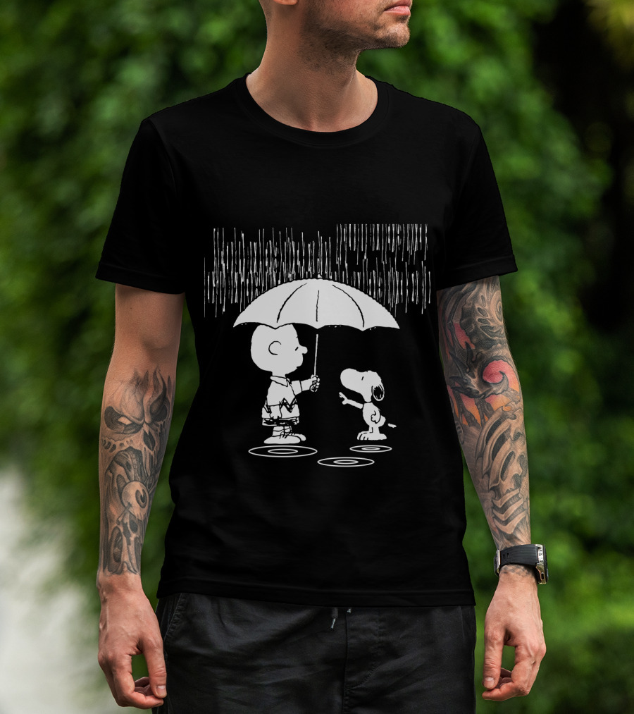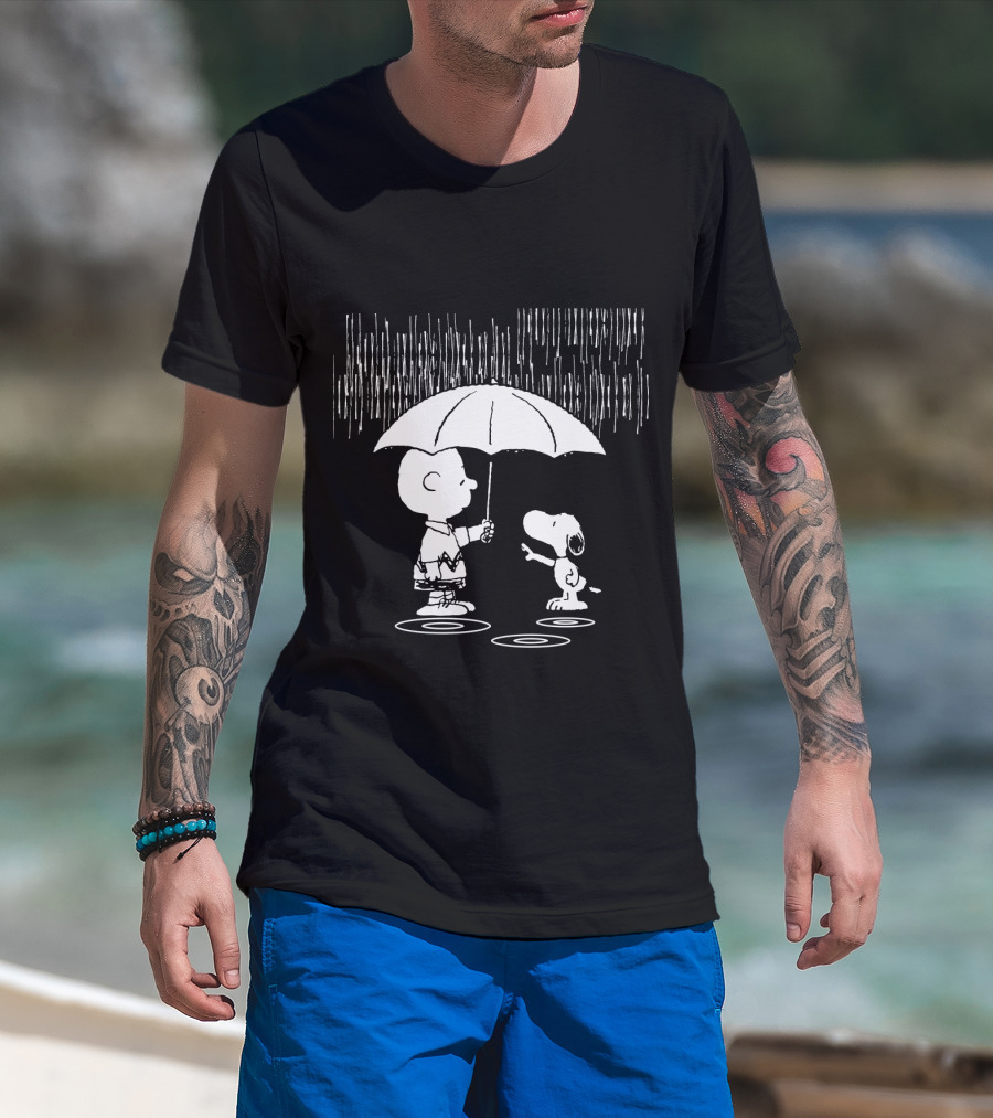 Waiting For You Under The Rainstorm Snoopy And Charlie Brown The Peanuts Movie T-Shirt