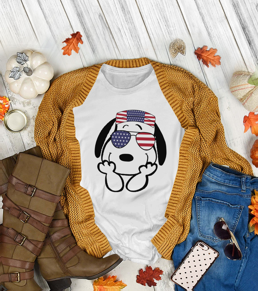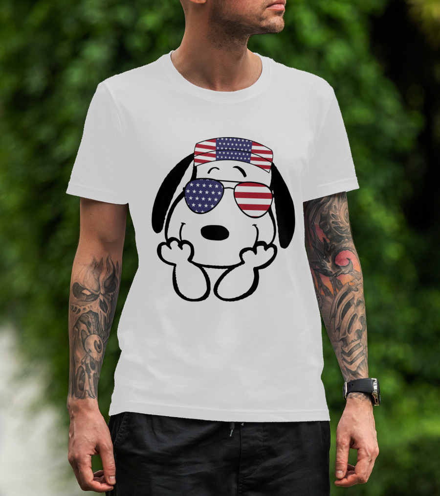Snoopy American Flag Sunglasses The Peanuts Movie Dog T-Shirt