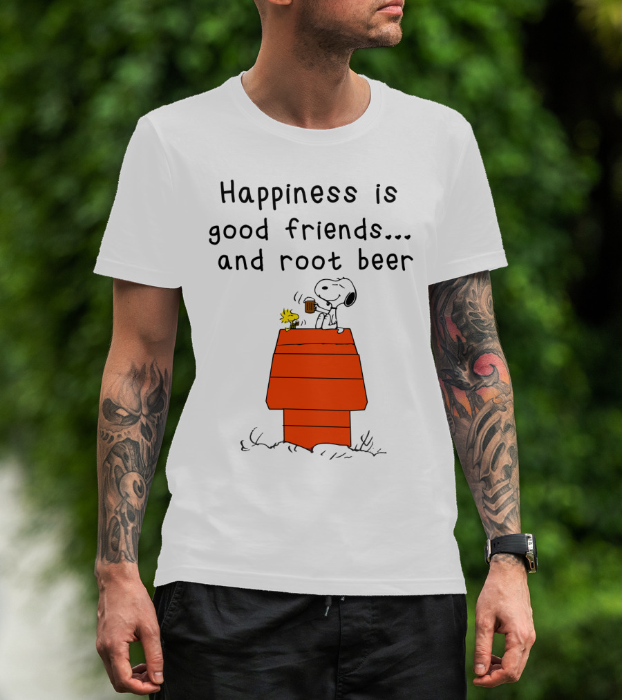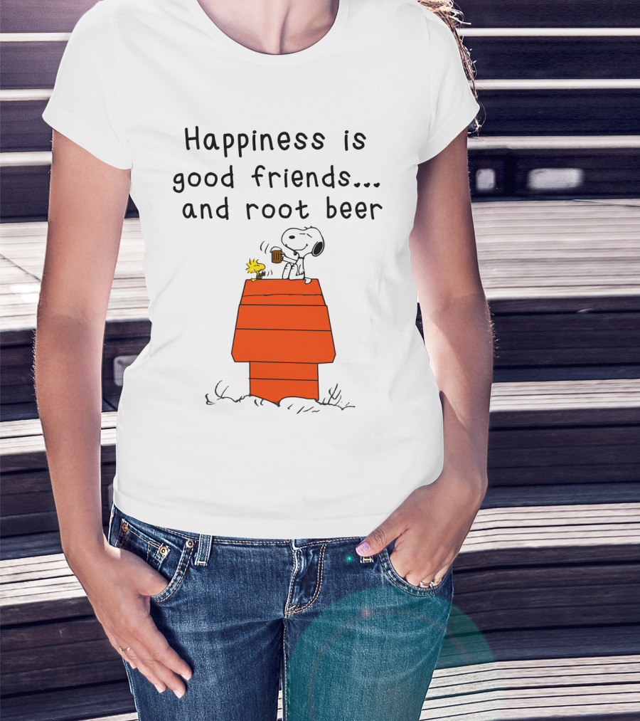 Happiness Is Good Friends And Root Beer With Snoopy And Woodstock Peanuts Movie T-Shirt