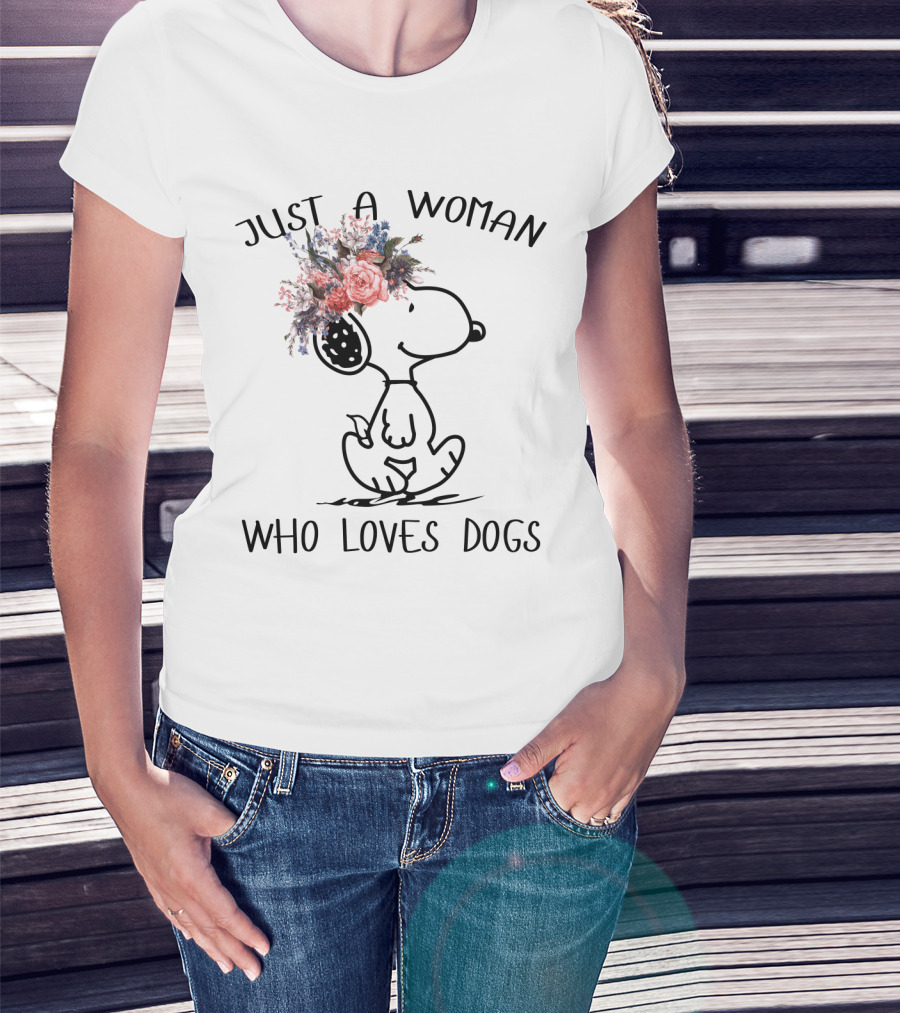 Just A Woman Who Loves Dogs Snoopy Floral Peanuts T-Shirt