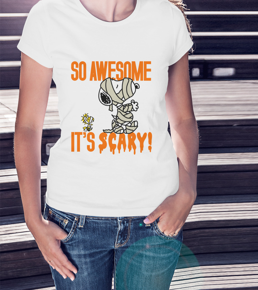 So Awesome It's Scary Funny Halloween Snoopy Peanuts Mummy Woodstock T-Shirt