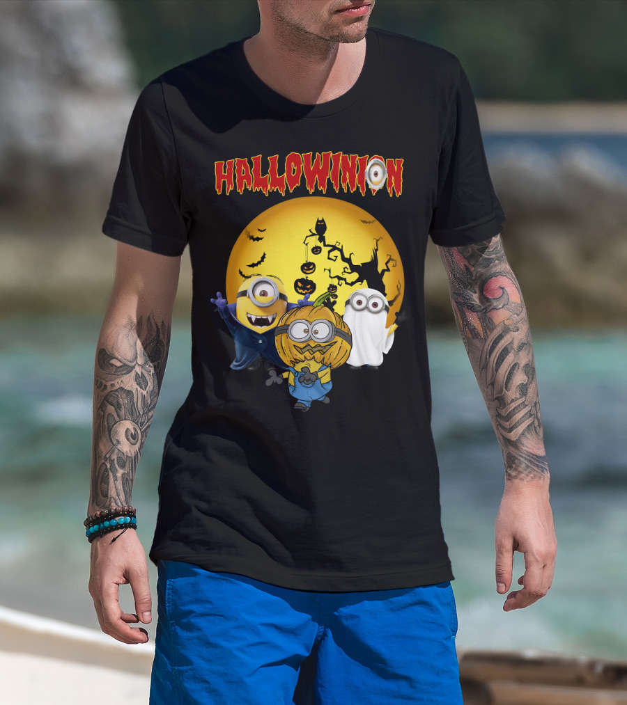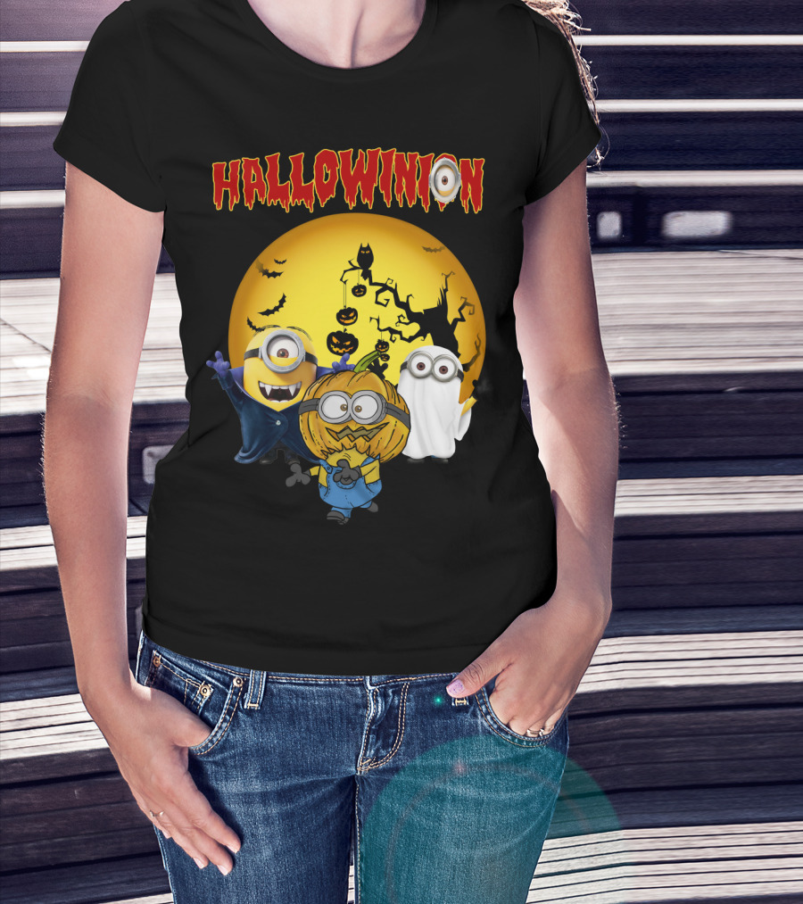 Hallowinion Halloween Minions Despicable Me Moon Bats Pumpkins Ghost Costume T-Shirt