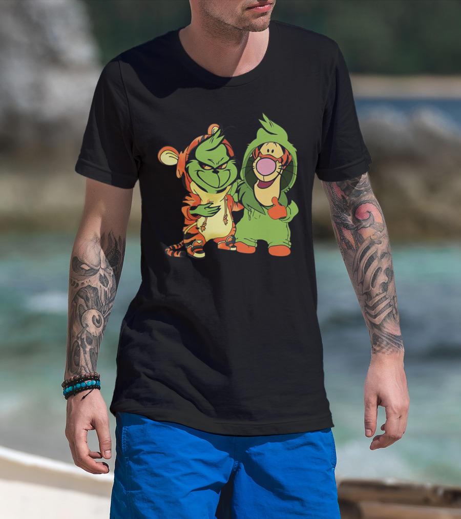 The Baby Tigger Grinch Mashup T-shirt is designed for everyday wear and a consistent fit. Fabric is pre-shrunk ring-spun cotton with durable stitching. See the size chart below for exact measurements.