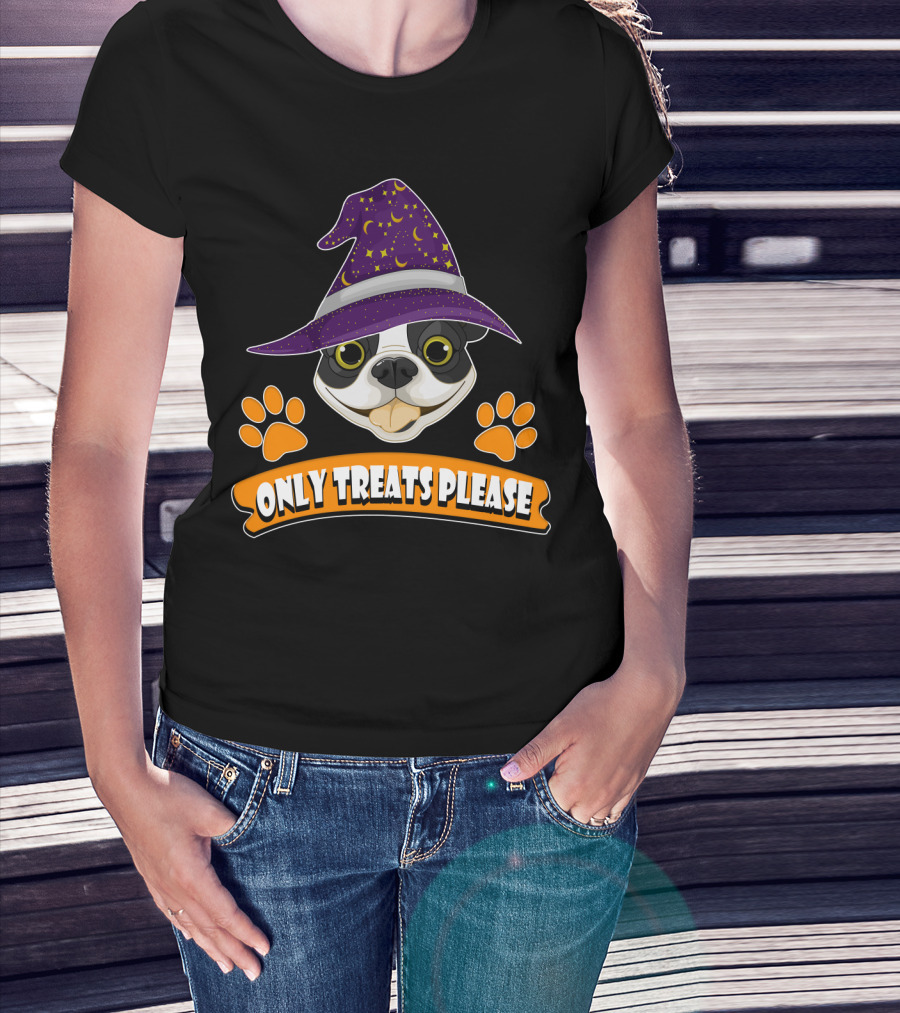 Boston Terrier Only Treats Please Wizard Hat And Paw Prints T-Shirt
